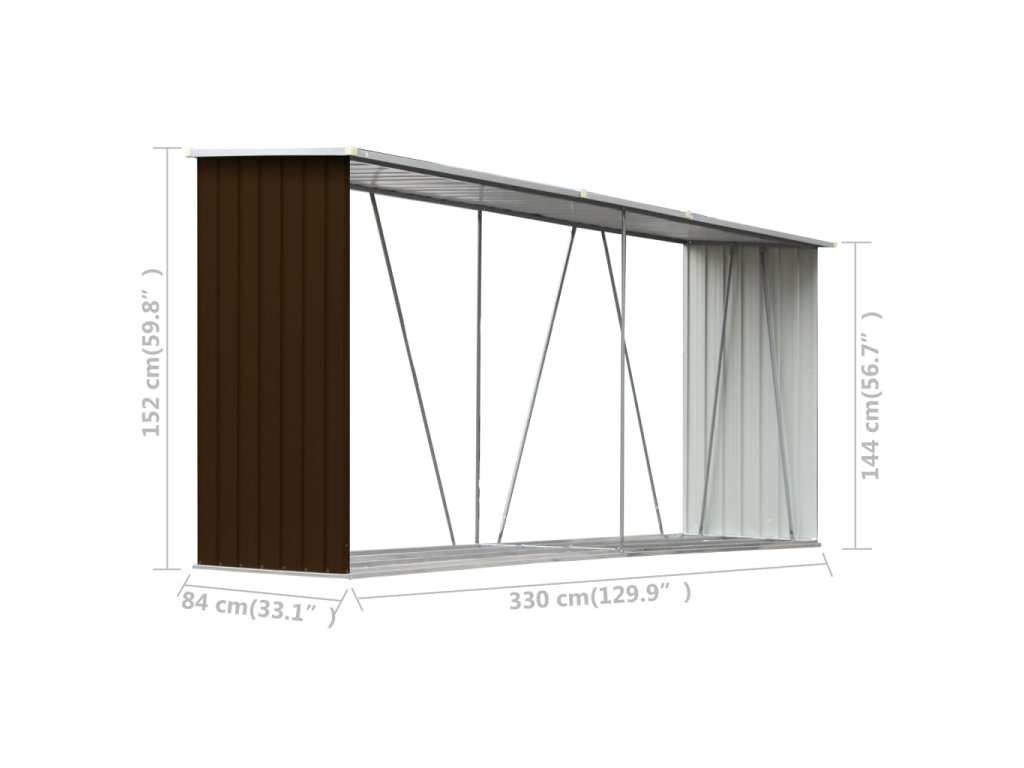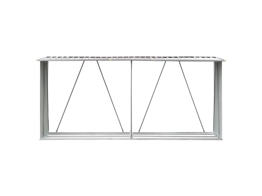 Má stabilnú konštrukciu s oceľovými nosnými tyčami a extra rúrkami na oboch stranách. Keďže je vyrobený z pozinkovanej ocele, sklad na drevo vyžaduje minimálnu údržbu a je veľmi odolný. Tento sklad na drevo obsahuje oceľový podlahový rám pre väčšiu stabilitu a zvýšené podlahové lamely, ktoré udržiavajú drevo vetrané a suché. Dažďová voda bude vďaka šikmej konštrukcii automaticky odtekať zo strechy. Náš sklad na drevo sa ľahko montuje.