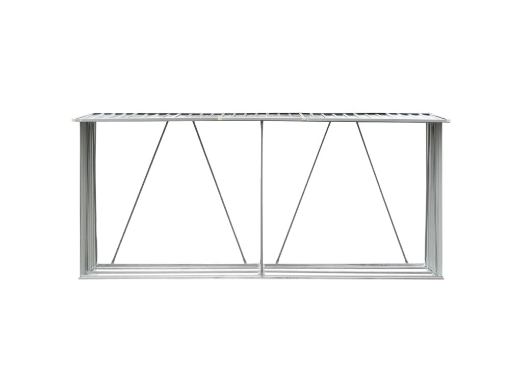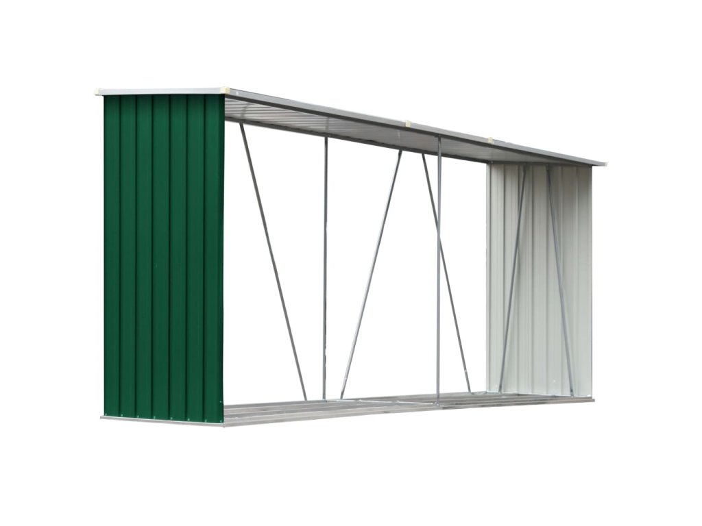 Má stabilnú konštrukciu s oceľovými nosnými tyčami a extra rúrkami na oboch stranách. Keďže je vyrobený z pozinkovanej ocele, sklad na drevo vyžaduje minimálnu údržbu a je veľmi odolný. Tento sklad na drevo obsahuje oceľový podlahový rám pre väčšiu stabilitu a zvýšené podlahové lamely, ktoré udržiavajú drevo vetrané a suché. Dažďová voda bude vďaka šikmej konštrukcii automaticky odtekať zo strechy. Náš sklad na drevo sa ľahko montuje.