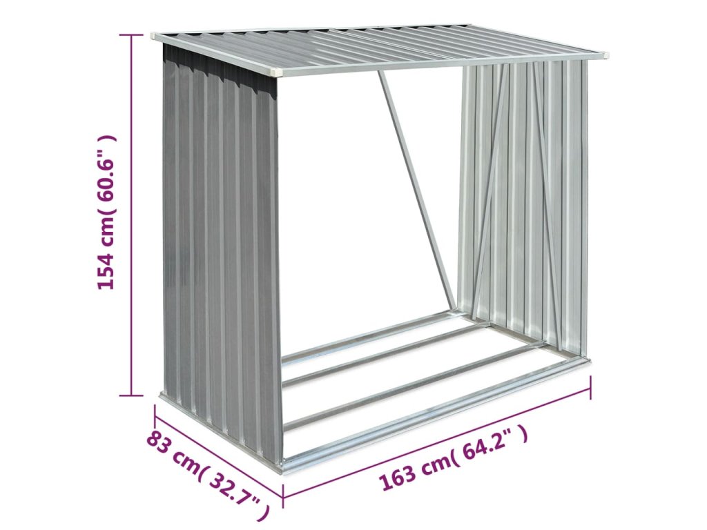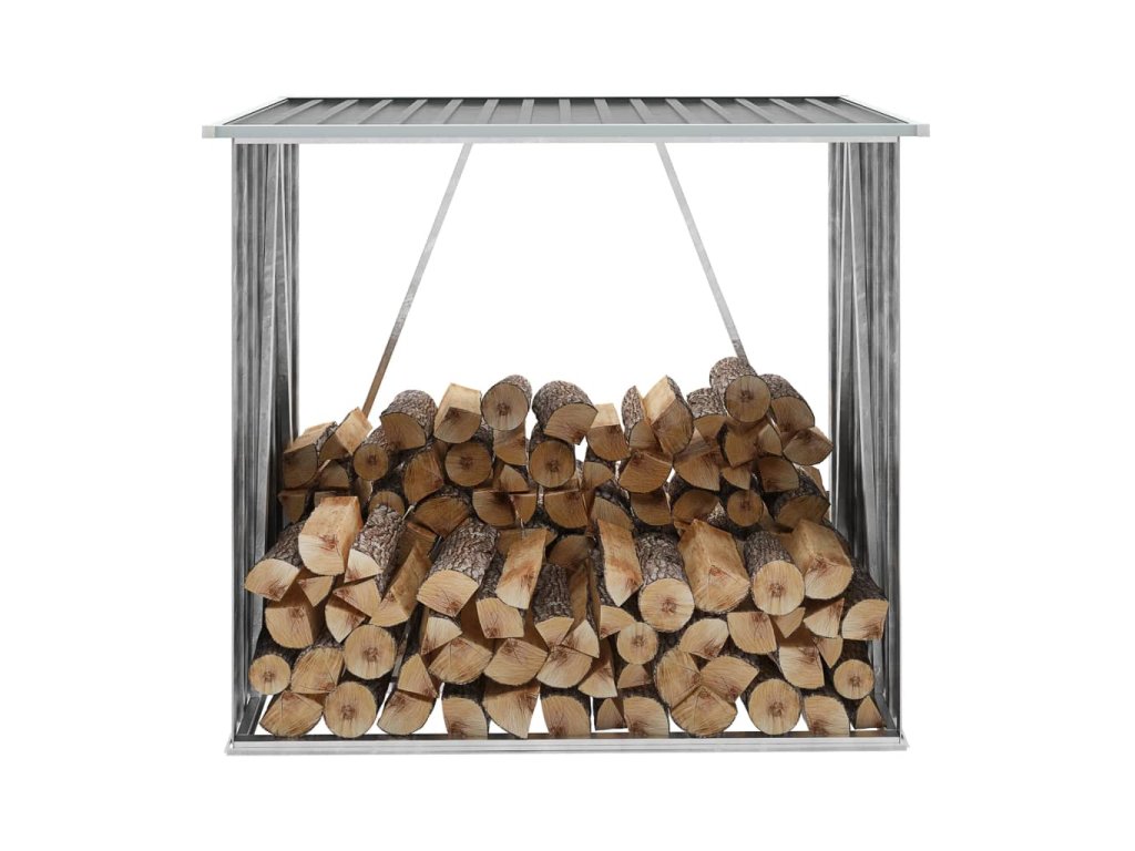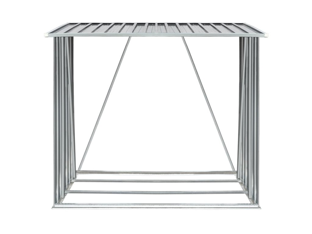 Má stabilnú konštrukciu s oceľovými nosnými tyčami a extra rúrkami na oboch stranách. Keďže je vyrobený z pozinkovanej ocele, sklad na drevo vyžaduje minimálnu údržbu a je veľmi odolný. Tento sklad na drevo obsahuje oceľový podlahový rám pre väčšiu stabilitu a zvýšené podlahové lamely, ktoré udržiavajú drevo vetrané a suché. Dažďová voda bude vďaka šikmej konštrukcii automaticky odtekať zo strechy. Náš sklad na drevo sa ľahko montuje.