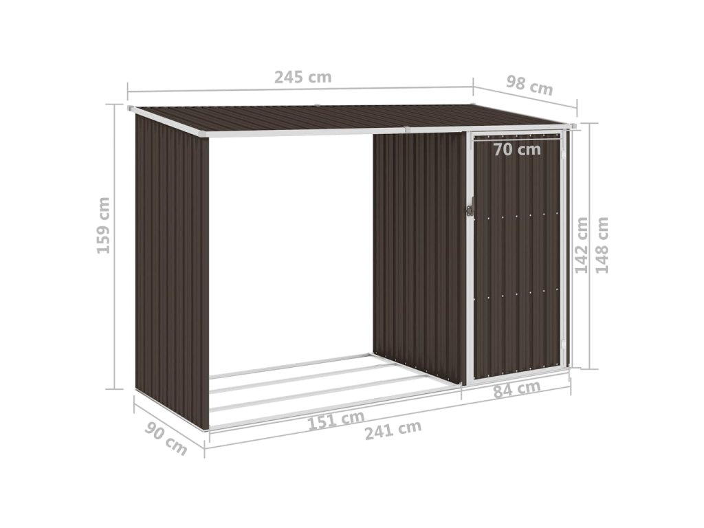 - Dostatok úložného priestoru: Tento kovový domček ponúka dostatok miesta na uskladnenie palivového dreva, záhradného náradia, nábytku, vybavenia a ďalších vecí. Má tiež predĺženú strechu na uskladnenie palivového dreva. Strechu je možné upevniť na oboch stranách prístrešku.