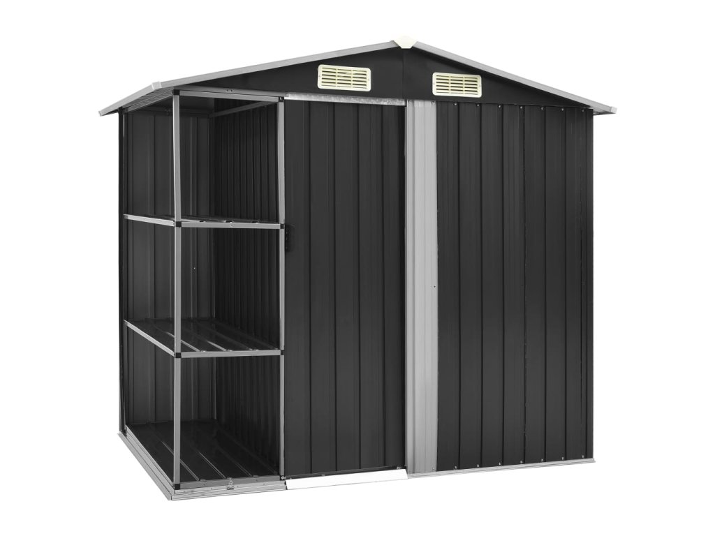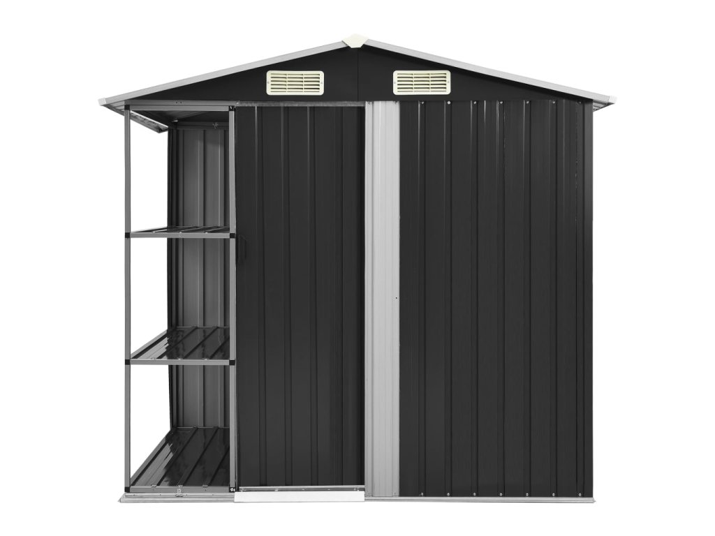 Náš záhradný domček s regálom je perfektnou voľbou do každej záhrady alebo vonkajšieho priestoru na uskladnenie záhradného náradia, zariadení na starostlivosť o trávnik, domácich potrieb a oveľa viac!