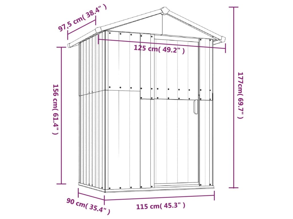- Odolný materiál: Domček na záhradné náradie je vyrobený z pozinkovanej ocele, ktorá zabraňuje hrdzaveniu a vydrží dlhodobé používanie.
