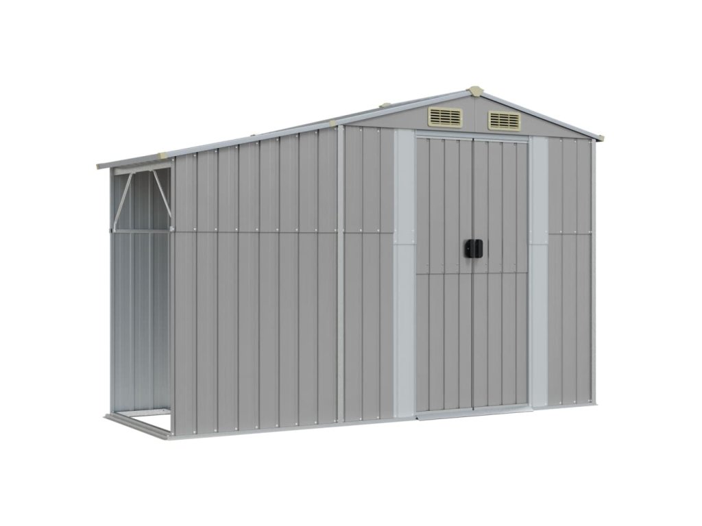 - Odolný materiál: Záhradný domček na náradie je vyrobený z pozinkovanej ocele, ktorá zabraňuje hrdzaveniu a vydrží dlhodobé používanie. Oceľ je mimoriadne tvrdý a pevný materiál. Ponúka robustnosť a stabilitu. Galvanizácia poskytuje lepšiu ochranu pred koróziou a je užitočná pre produkty, ktoré sa budú používať vonku, ako aj v náročných podmienkach.