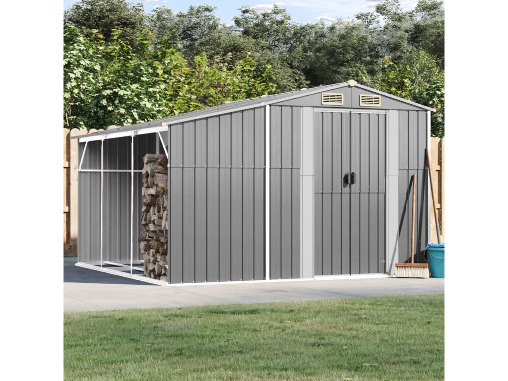 - Dostatok úložného priestoru: Táto kovová kôlňa so stojanom na drevo poskytuje dostatok priestoru na uskladnenie palivového dreva, záhradného náradia, nábytku, vybavenia a ďalších vecí.
