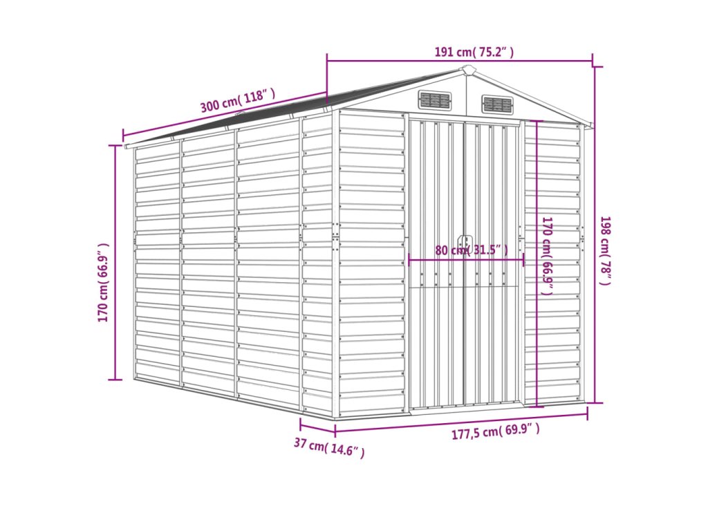 - Dostatok úložného priestoru: Táto kovová kôlňa poskytuje dostatok priestoru na uskladnenie palivového dreva, záhradného náradia, nábytku, vybavenia a ďalších vecí.