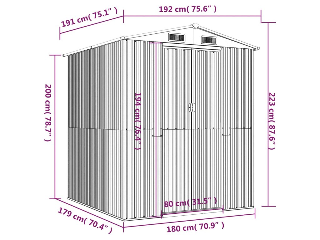 - Odolný materiál: Záhradný domček na náradie je vyrobený z pozinkovanej ocele, ktorá zabraňuje zhrdzaveniu a vydrží dlhodobé používanie.