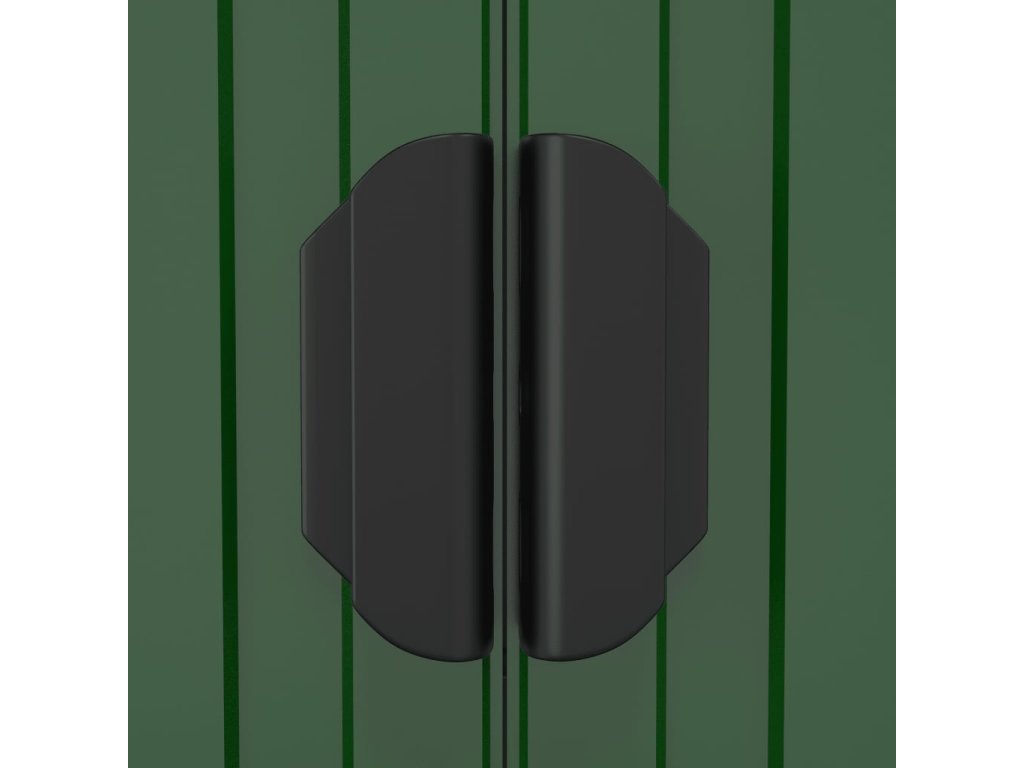 - Odolný materiál: Záhradný domček na náradie je vyrobený z pozinkovanej ocele, ktorá je odolná a nekoroduje, ani ju neovplyvňujú nepriaznivé poveternostné podmienky.