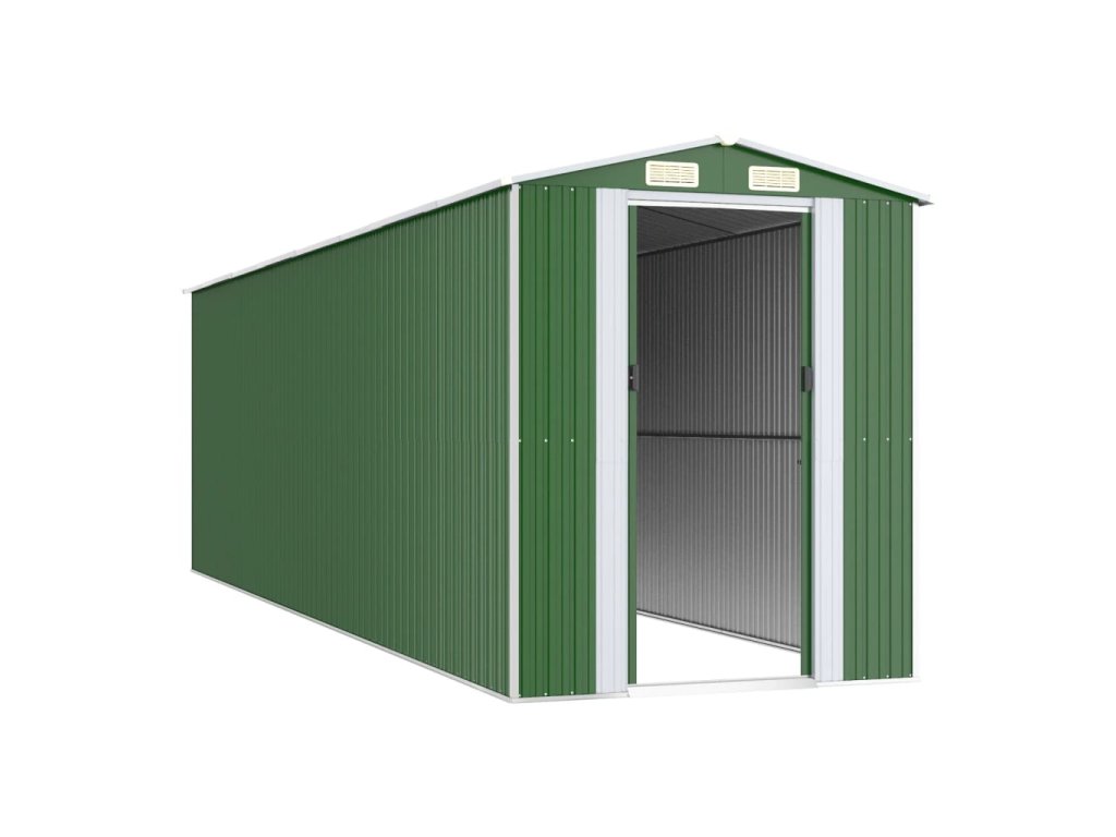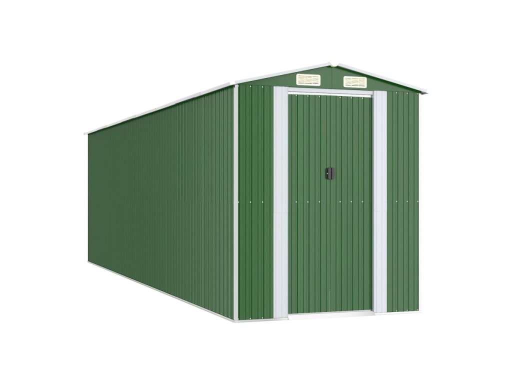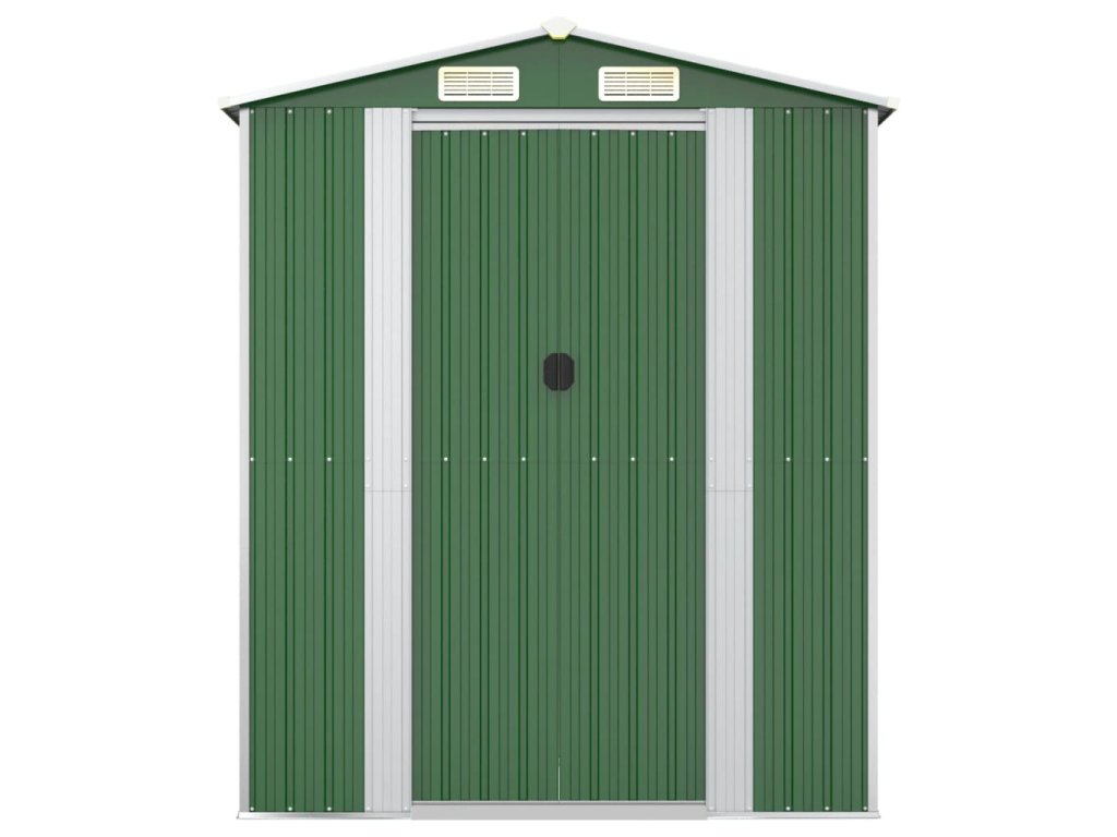 - Odolný materiál: Záhradný domček na náradie je vyrobený z pozinkovanej ocele, ktorá je odolná a nekoroduje, ani ju neovplyvňujú nepriaznivé poveternostné podmienky.