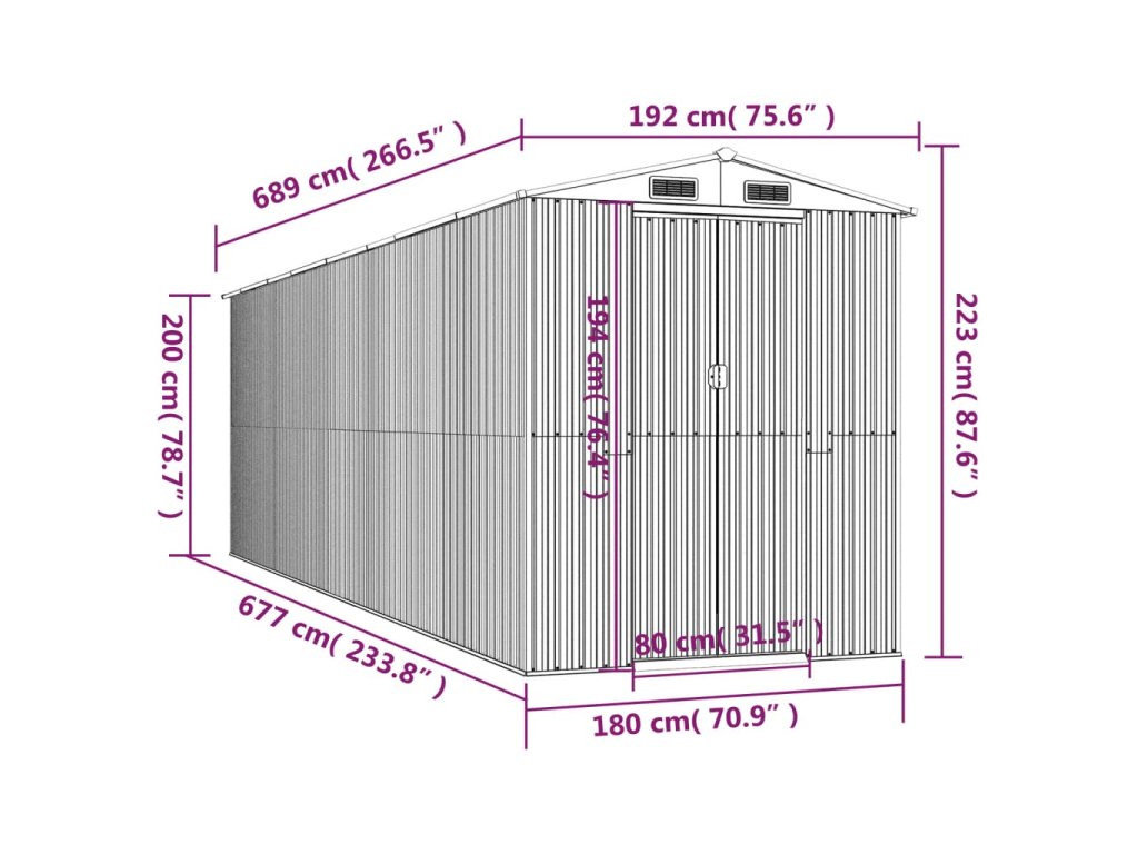 - Praktický dizajn: Táto úložná kôlňa má vetracie otvory v prednej aj zadnej časti, ktoré zaisťujú vynikajúce vetranie. Dvojité posuvné dvere umožňujú ľahký vstup a výstup.