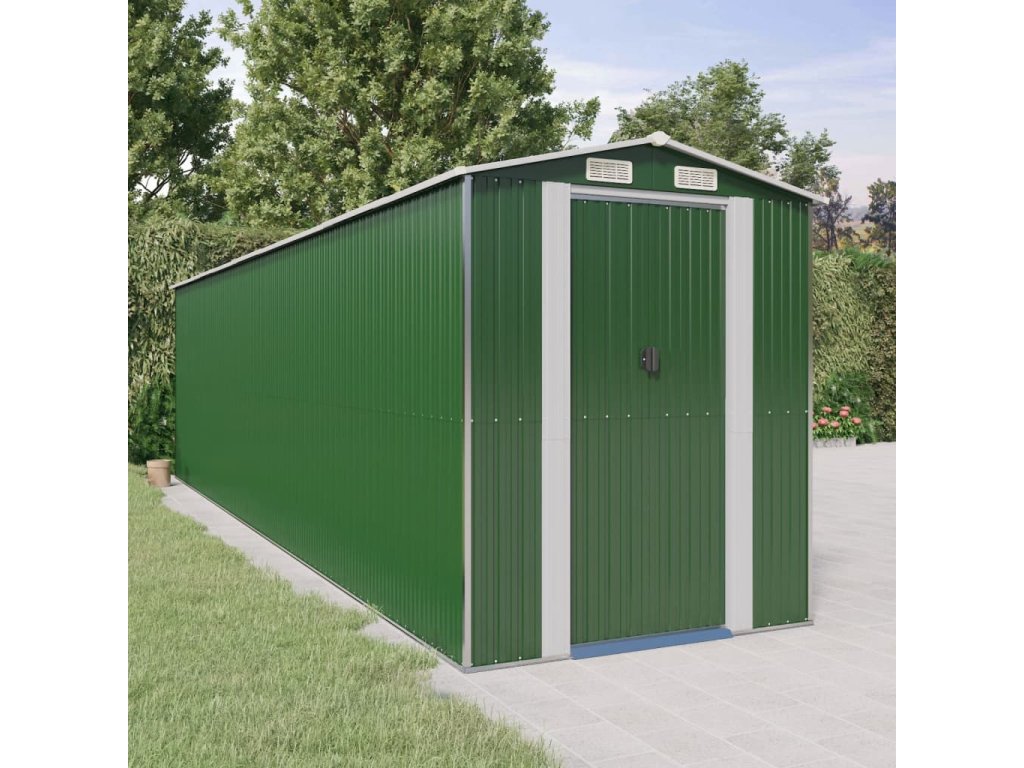- Odolný materiál: Záhradný domček na náradie je vyrobený z pozinkovanej ocele, ktorá je odolná a nekoroduje, ani ju neovplyvňujú nepriaznivé poveternostné podmienky.