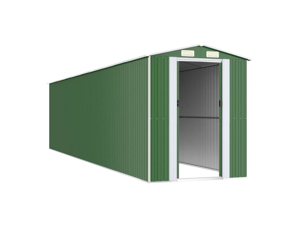 - Odolný materiál: Záhradný domček na náradie je vyrobený z pozinkovanej ocele, ktorá je odolná a nekoroduje, ani ju neovplyvňujú nepriaznivé poveternostné podmienky.