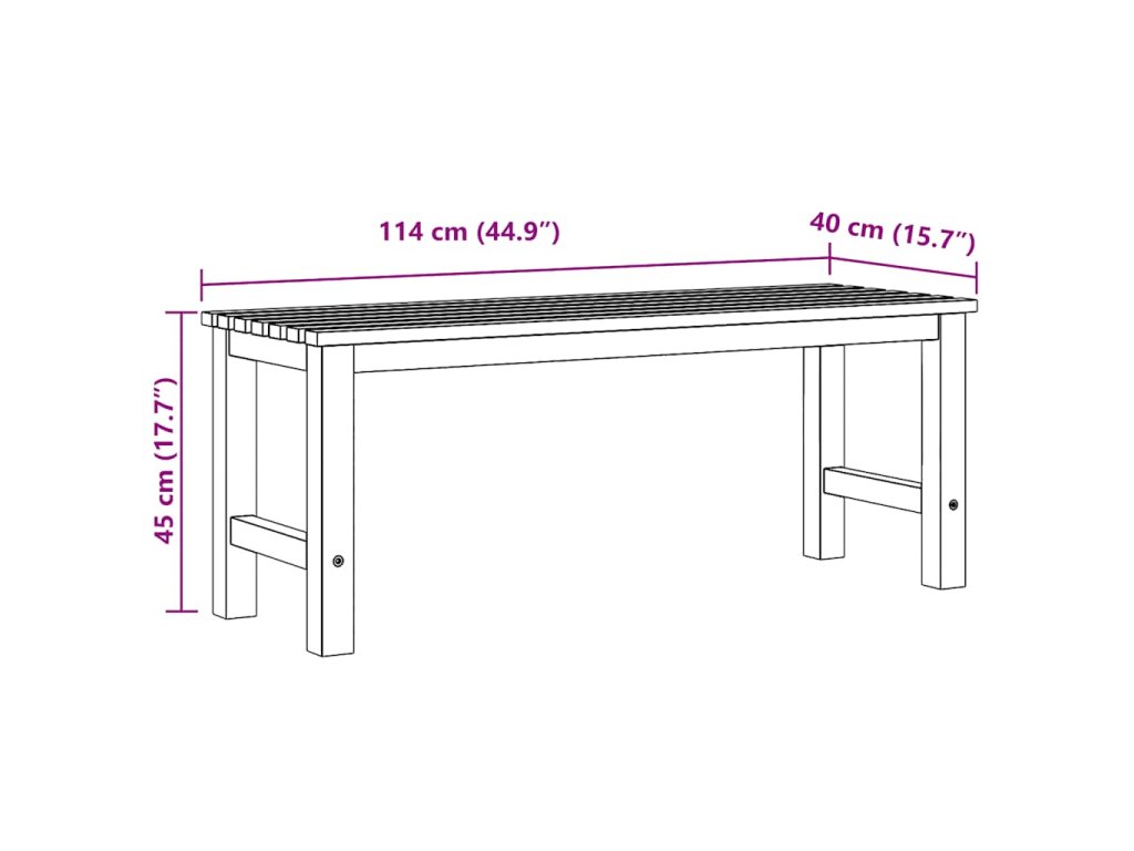 Vďaka celkovej dĺžke 114 cm sa na záhradnú lavičku zmestia až 3 osoby.