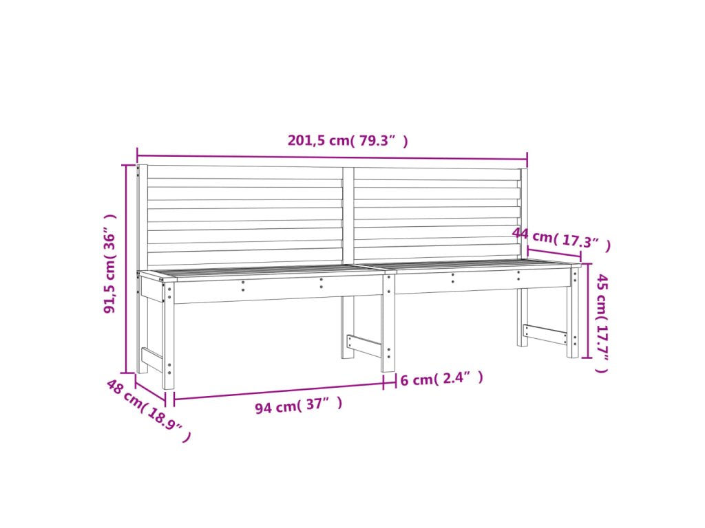 - Masívne borovicové drevo: Záhradné sedadlo je vyrobené z masívneho borovicového dreva. Masívne borovicové drevo je krásny prírodný materiál. Borovicové drevo má rovnú štruktúru a uzly dodávajú materiálu jeho typický rustikálny vzhľad.