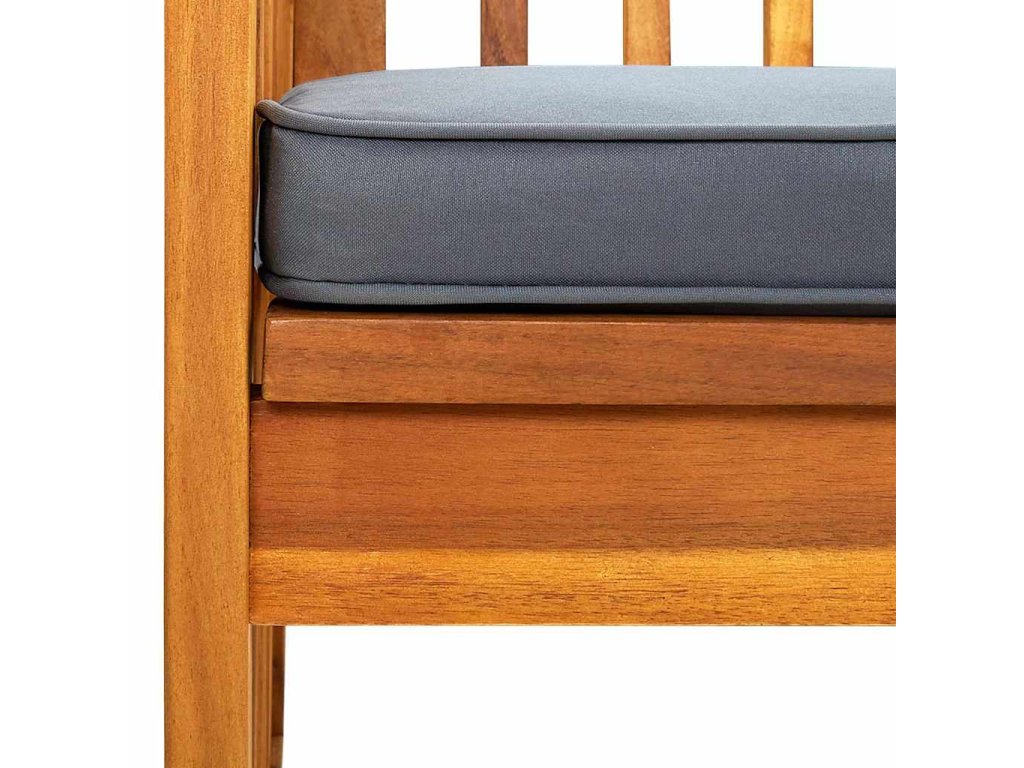 Lavička s opierkami je vyrobená z masívneho akáciového dreva, tropického tvrdého dreva, ktoré je odolné voči poveternostným vplyvom a veľmi odolné. Vďaka olejovej povrchovej úprave má terasová sedačka teplú farbu, a ľahko sa čistí a udržiava. Balenie obsahuje vankúš s hrubým polstrovaním pre dokonalé pohodlie.