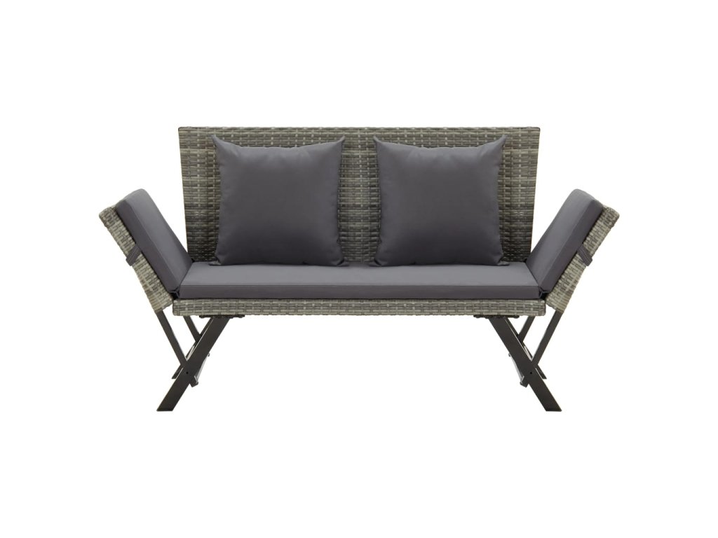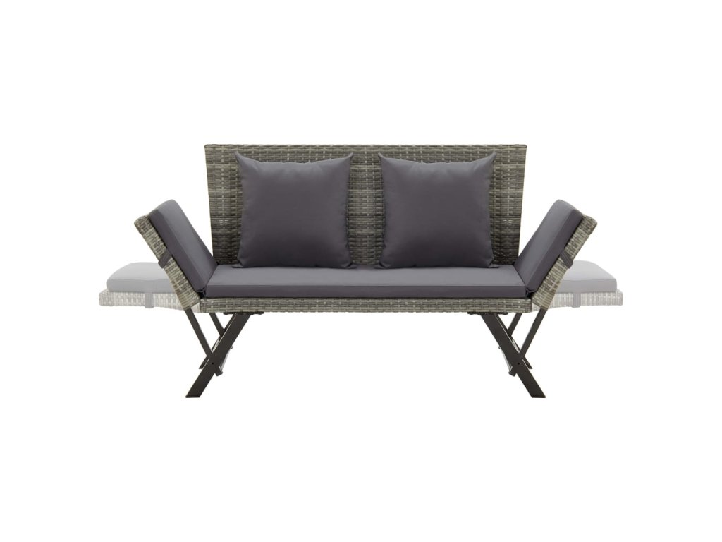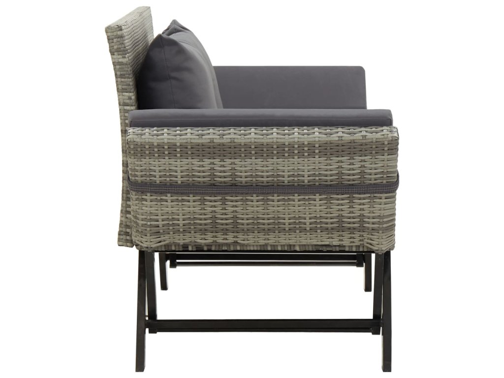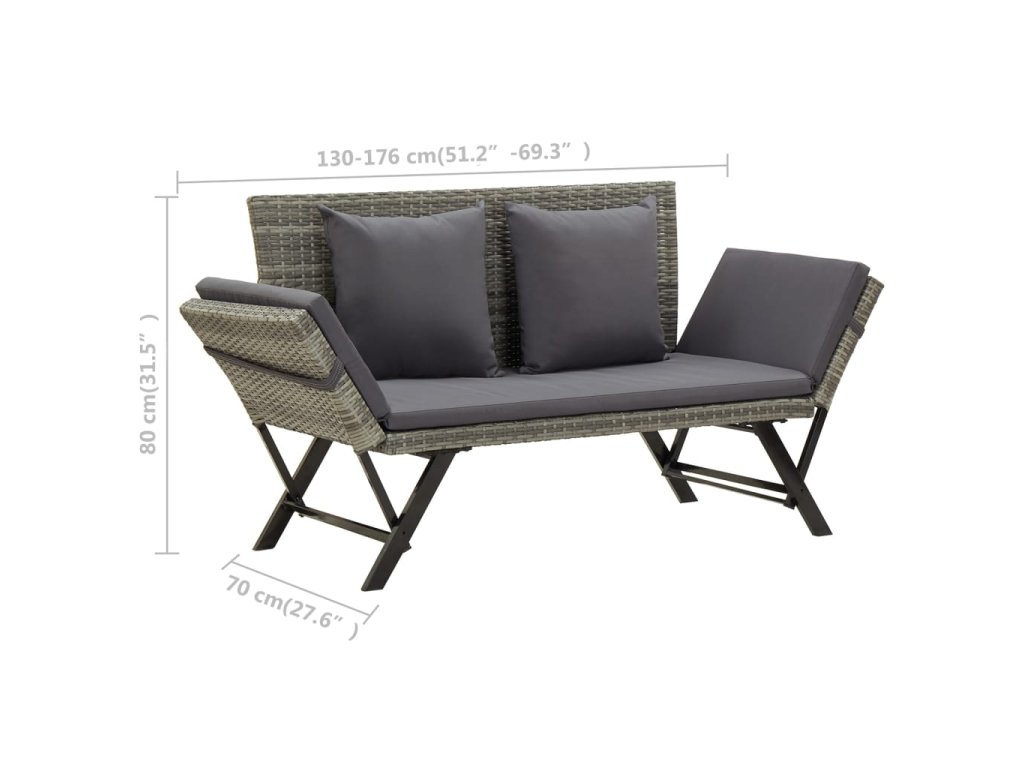 Táto záhradná lavica vyrobená PE ratanu z odolného voči poveternostným vplyvom je ľahko čistiteľná, odolná a vhodná na každodenné použitie. Vyznačuje sa pevným oceľovým rámom s práškovým povrchom, vďaka ktorému je táto lavica veľmi stabilná a odolná. Vďaka nastaviteľným stranám sa dá ľahko a rýchlo premeniť z lavice na dennú posteľ a späť. Silne polstrovaný vankúš poskytne maximálny komfort a dodatočnú oporu. Vďaka zipsu je poťah vankúša odnímateľný pre ľahké pranie.
