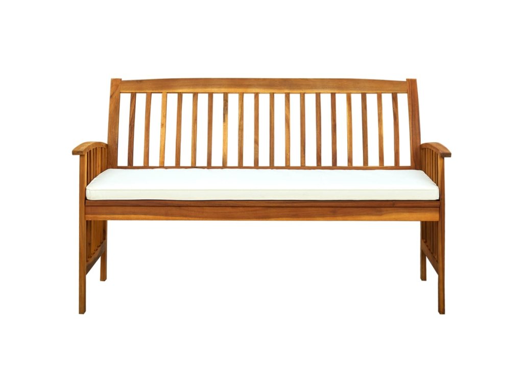 Lavička s opierkami je vyrobená z masívneho akáciového dreva, tropického tvrdého dreva, ktoré je odolné voči poveternostným vplyvom a veľmi odolné. Vďaka olejovej povrchovej úprave má terasová sedačka teplú farbu, a ľahko sa čistí a udržiava. Balenie obsahuje vankúš s hrubým polstrovaním pre dokonalé pohodlie.