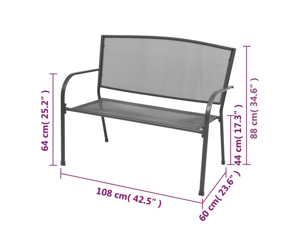Lavička je vyrobená z robustnej ocele ošetrenej elektroforetickou úpravou a práškovou povrchovou úpravou. Kovová lavička je mimoriadne pevná, trvácna a odolná voči poveternostným vplyvom a hrdzi. Vďaka tejto úprave sa navyše ľahko čistí a udržiava. Sieťovinový dizajn lavičke dodáva elegantný vzhľad. Pohodlne si sadnite a užívajte si príjemné chvíle odpočinku na tejto štýlovej lavičke!