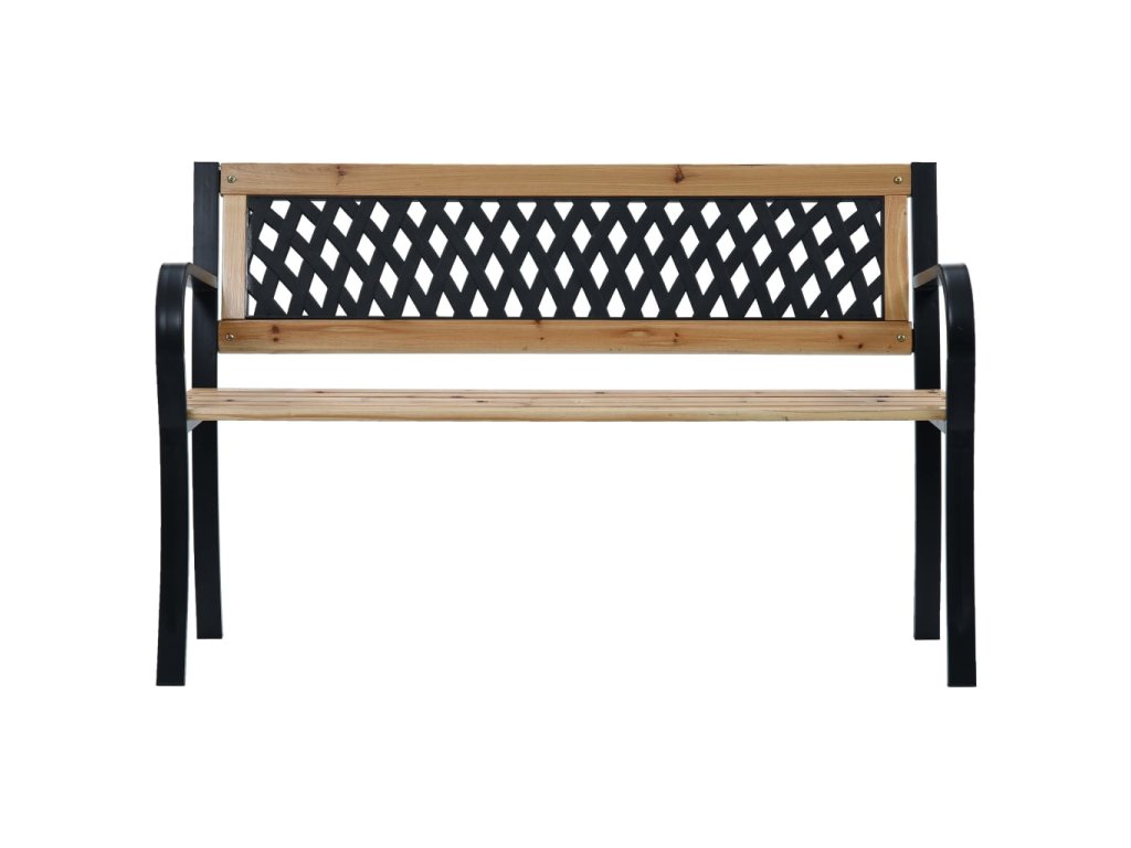 Táto lavička je vyrobená z masívneho dreva a vysokokvalitnej ocele je odolná voči poveternostným vplyvom a veľmi trvácna. S plastovým operadlom v tvare diamantu pôsobí veľmi pútavo a bude ideálnou voľbou pre vašu záhradu alebo terasu. Bude tiež perfektným doplnkom v prednej časti domu.