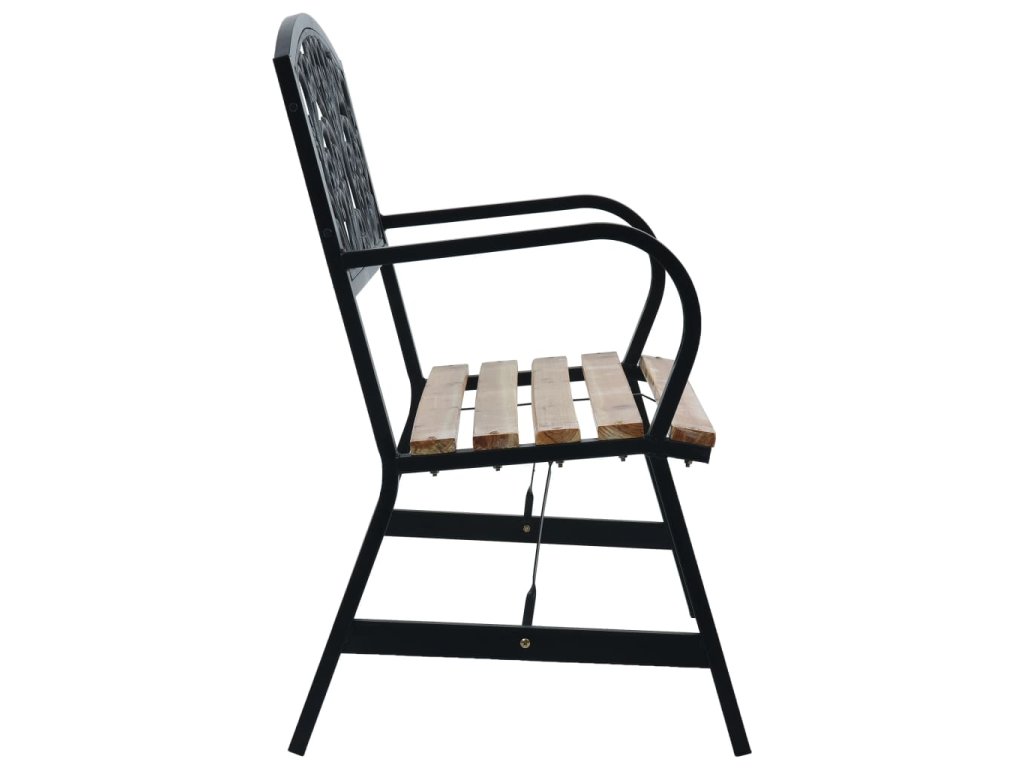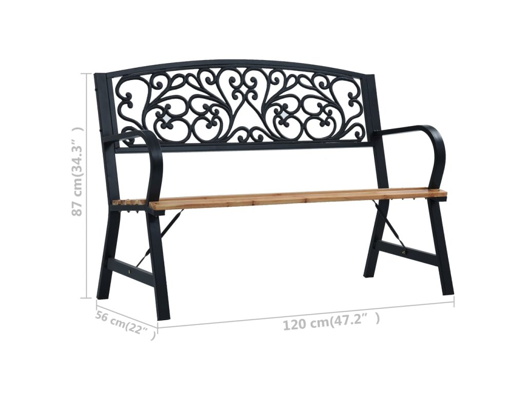 Lavička má sedadlo z masívneho dreva, operadlo zo zliatiny železa a oceľový rám. Je odolná voči poveternostným vplyvom a veľmi trvácna. Efektný a krásny vzor na operadle dodá eleganciu akejkoľvek záhrade alebo terase. Bude tiež perfektným doplnkom v prednej časti domu.