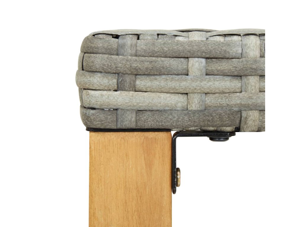 Lavička z vodeodolného PE ratanu sa dá jednoducho vyčistiť vlhkou handričkou, je odolná a vhodná na každodenné používanie v exteriéri. Táto vonkajšia lavička má nohy z akáciového masívu, vďaka čomu je veľmi stabilná a odolná. Vďaka remeselnému spracovaniu a krásnej štruktúre dreva je každý kus tohto nábytku jedinečný a mierne odlišný od ostatných kusov. Montáž tejto lavičky je jednoduchá.