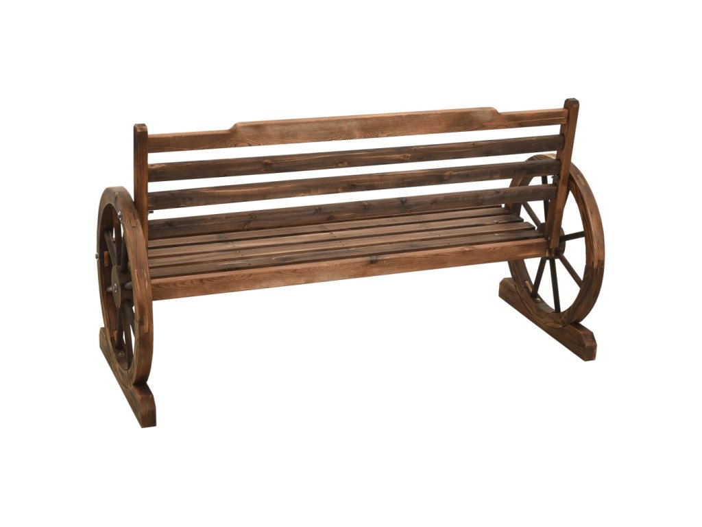 Táto lavica z jedľového masívu s unikátnym dizajnom vozíka je vynikajúcou voľbou pre relaxáciu na záhrade alebo terase.