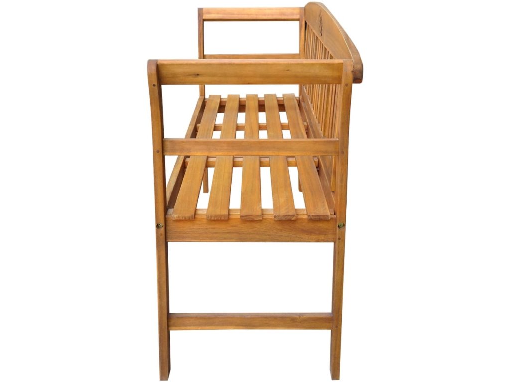 Naša drevená lavička s ružou v strede operadla je ideálnym doplnkom na každý trávnik alebo na záhradu. Lavička je vyrobená z akáciového masívu, vďaka čomu je pevná, trvácna a vhodná do vonkajších priestorov. Operadlo a opierky na ruky poskytujú optimálny komfort počas sedenia. Ohnuté podrúčky dodávajú lavici elegantný vzhľad. Oddýchnite si na tejto jedinečnej záhradnej lavičke!