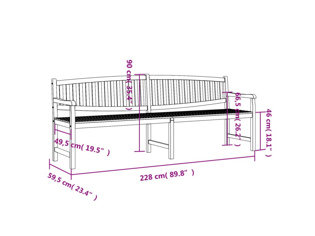 - Rozmery: 228 x 59,5 x 90 cm (Š x H x V)