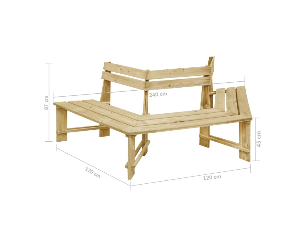 Lavička pod strom je vyrobená z impregnovaného borovicového dreva prvotriednej kvality, vďaka čomu je trvácna a odolná voči poveternostným vplyvom a hnilobe. Dá sa jednoducho priemiestniť a prispôsobiť akýmkoľvek vonkajším priestorom. Oddýchnite si na tejto krásnej lavičke! Položka sa jednoducho montuje.