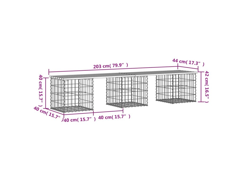 - Pevná a stabilná základňa: Táto vonkajšia lavička má základňu z koša z galvanizovanej ocele. Je navrhnutá tak, aby bola vyplnená kameňmi a štrkom pre dodatočnú krásu. Mriežku tvoria priečne a pozdĺžne drôty, ktoré sú zvarené na každom prieseku pre čo najväčšiu stabilitu.