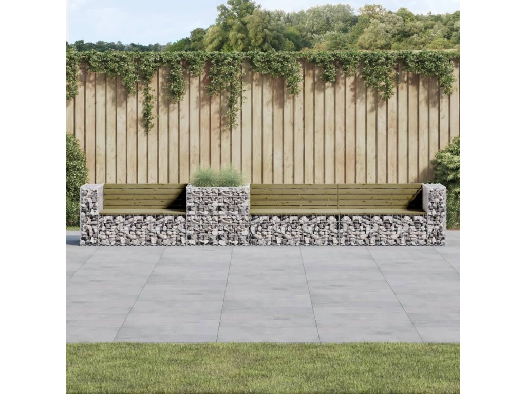 - Tento výrobok je zostavený z 2 záhradných lavičiek (rohových), záhradnej lavičky (stredovej) a gabionového koša.