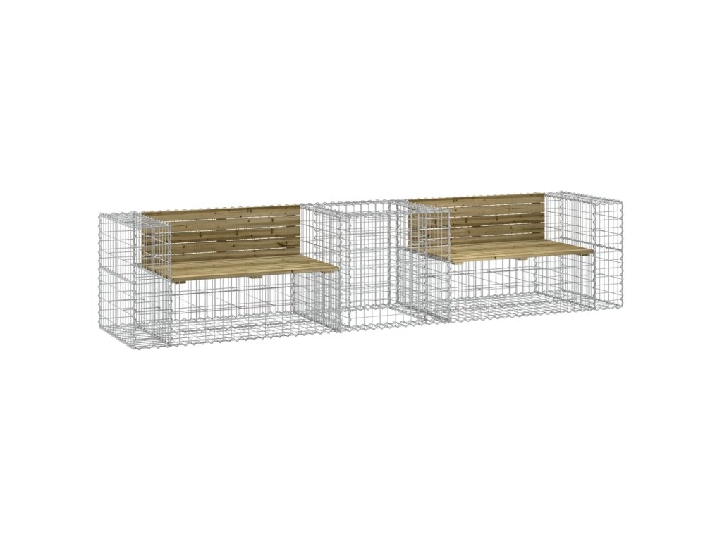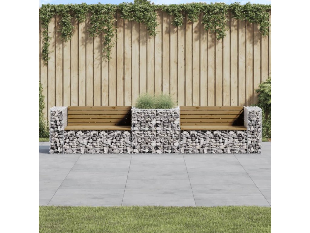 - Tento produkt tvoria 2 záhradné lavičky a gabiónový kôš.