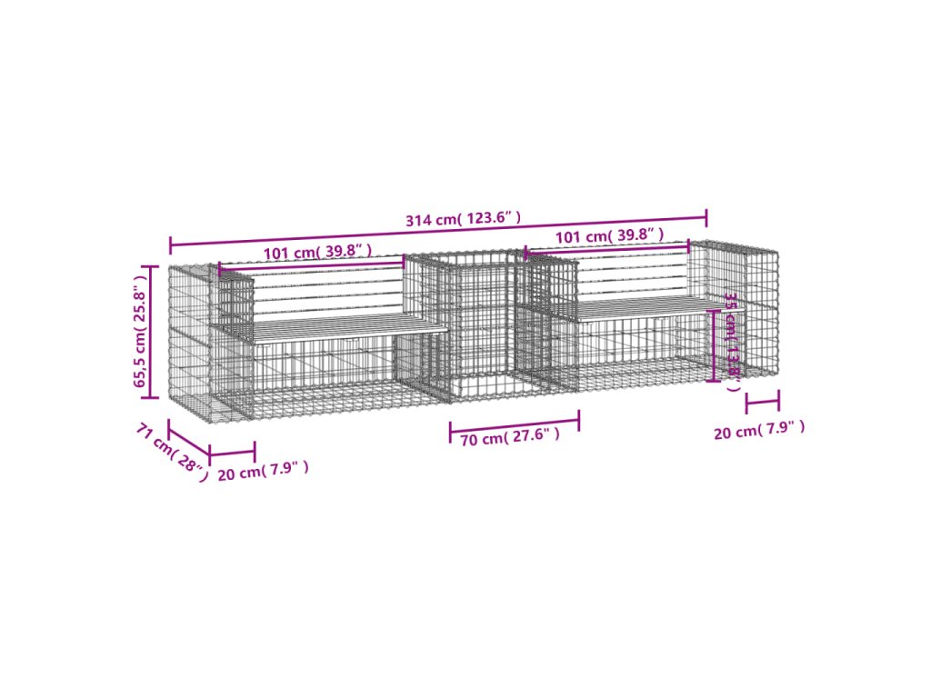 - Tento produkt tvoria 2 záhradné lavičky a gabiónový kôš.