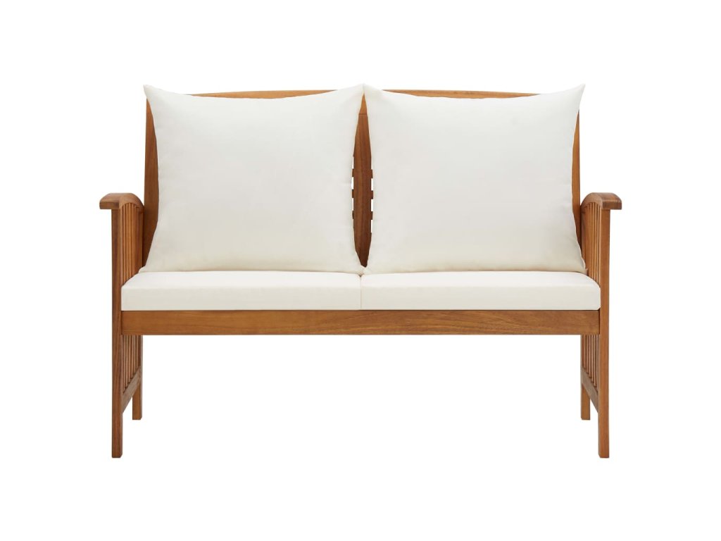 Vonkajšia lavička je vyrobená z akáciového masívu s olejovým náterom, vďaka čomu je stabilná a trvácna. Vďaka remeselnému opracovaniu a krásnej textúre dreva je každý kus nábytku jedinečný a trochu odlišný od ostatných. Podložka na sedadlo a vankúš na operadlo sa postarajú o to, aby sa vám na lavičke sedelo naozaj pohodlne. Operadlo a opierky na ruky poskytujú optimálny komfort.