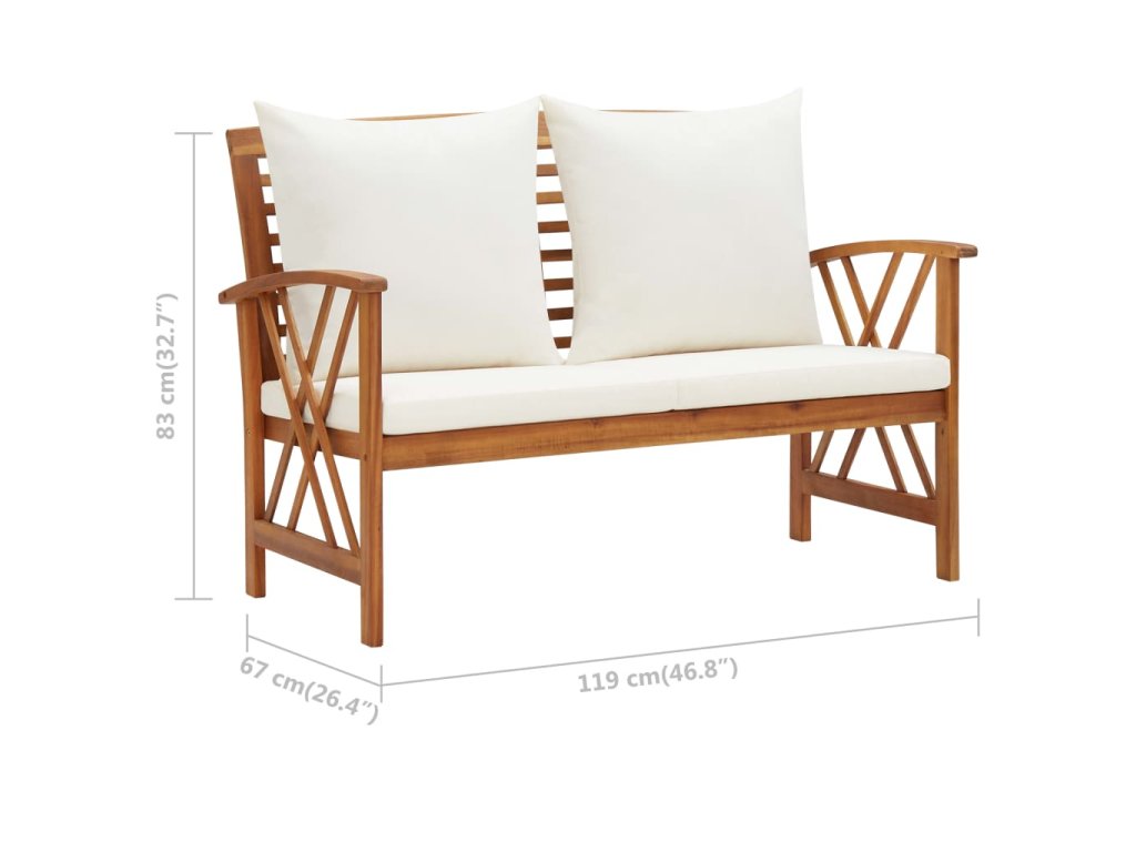 Táto vonkajšia lavica je vyrobená z masívneho akáciového dreva, tvrdého dreva s bohatou štruktúrou. Krásne navrhnutá lavica je stabilná, odolná a priťahuje pozornosť. Olejom upravený povrch sa ľahko čistí vlhkou handričkou a je vhodný na vonkajšie použitie. Vankúš na sedadlo a operadlo poskytuje optimálne pohodlie počas sedenia. Drevená lavica vytvorí ideálne miesto na relaxáciu alebo rozhovor s rodinnými príslušníkmi na záhrade, terase alebo balkóne.