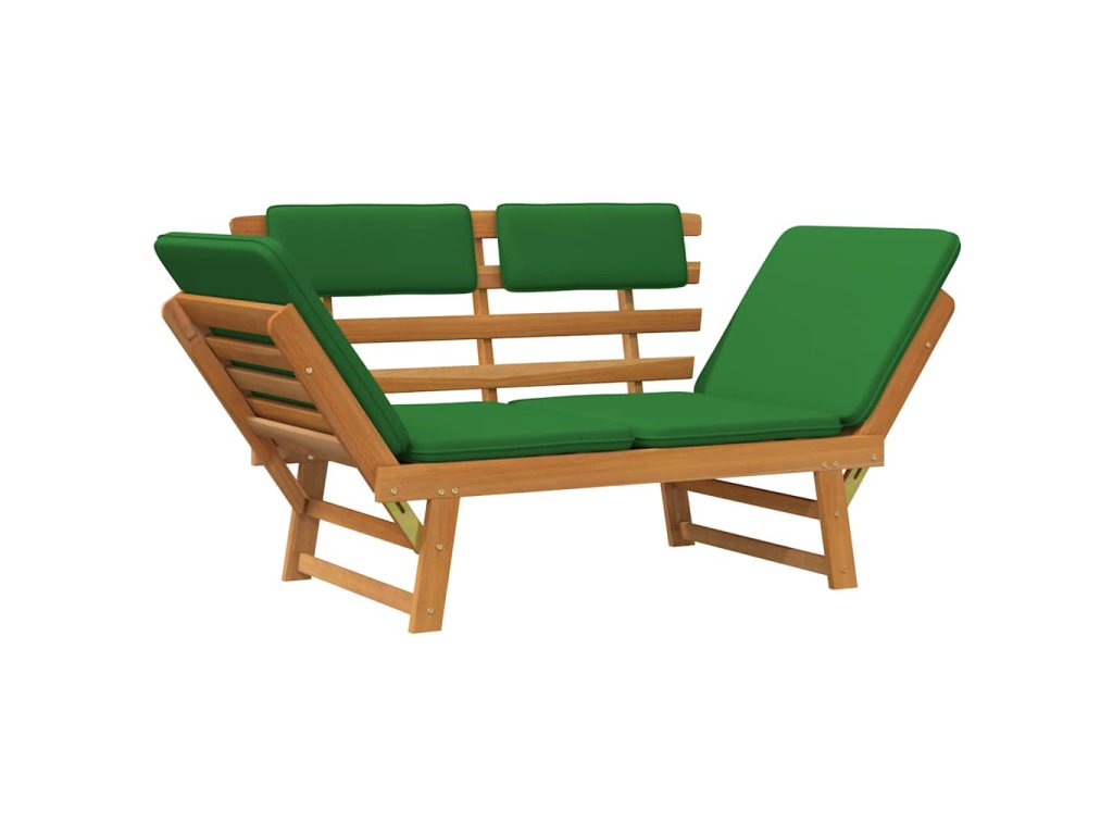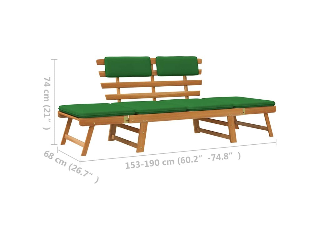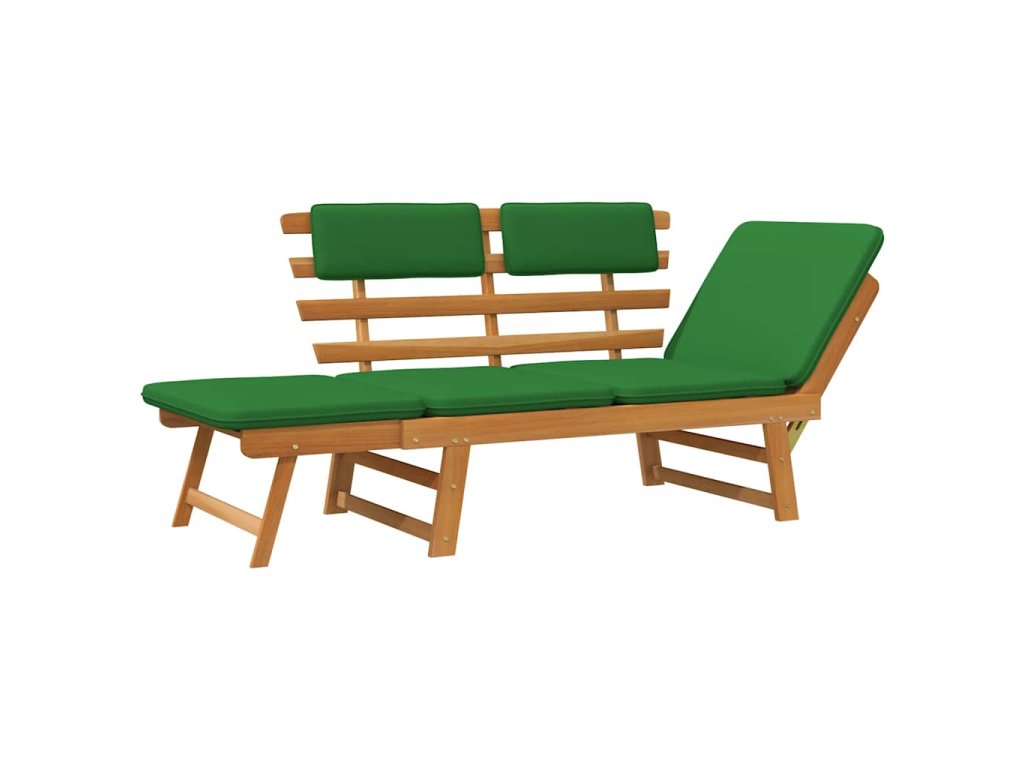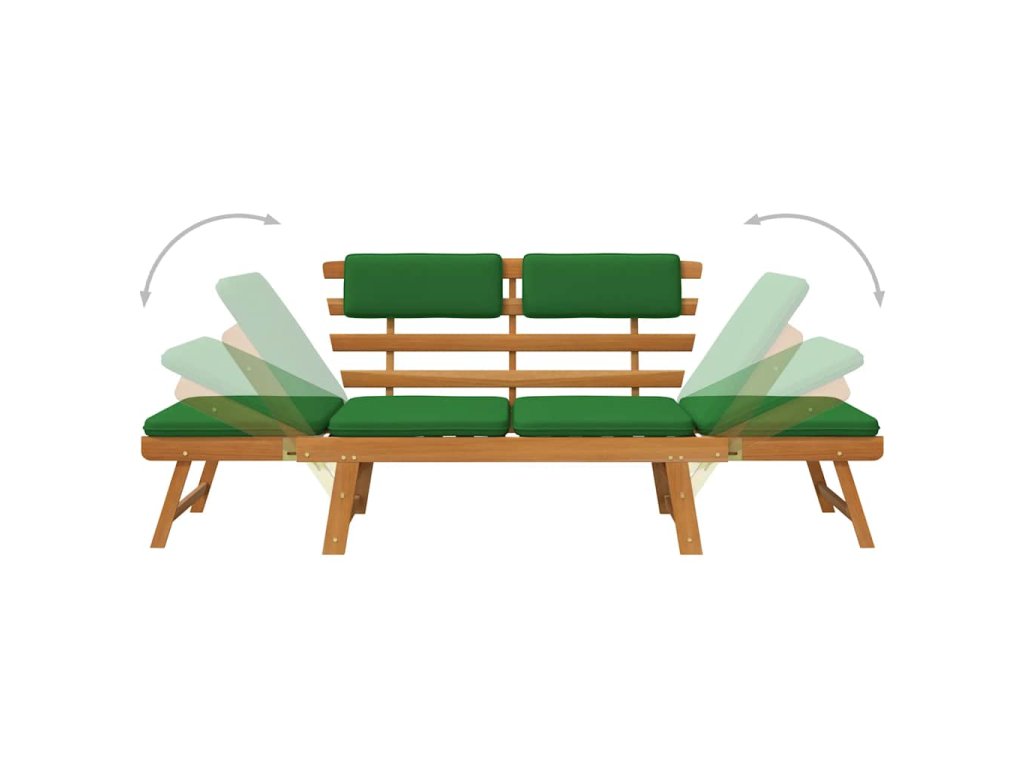 Záhradné ležadlo sa dá rýchlo a ľahko premeniť z lavice na pohovku a naopak pomocou nastaviteľných bočných dielov. Hrubé, odnímateľné podložky na operadlo a sedadlo poskytujú pohodlie pri sedení a ležaní. Poťahy podložiek sa dajú jednoducho zvliecť a oprať. Vonkajšia lavička je vyrobená z akáciového dreva, tvrdého dreva s bohatou štruktúrou. Je odolná voči poveternostným vplyvom a je vhodná na vonkajšie použitie.