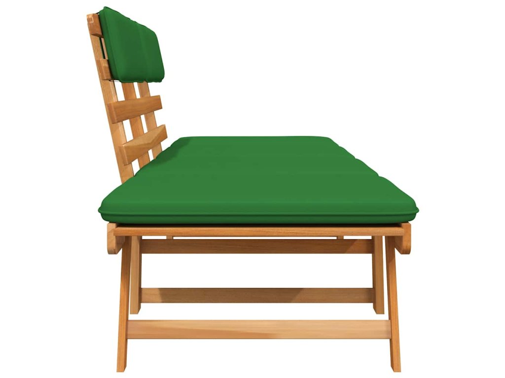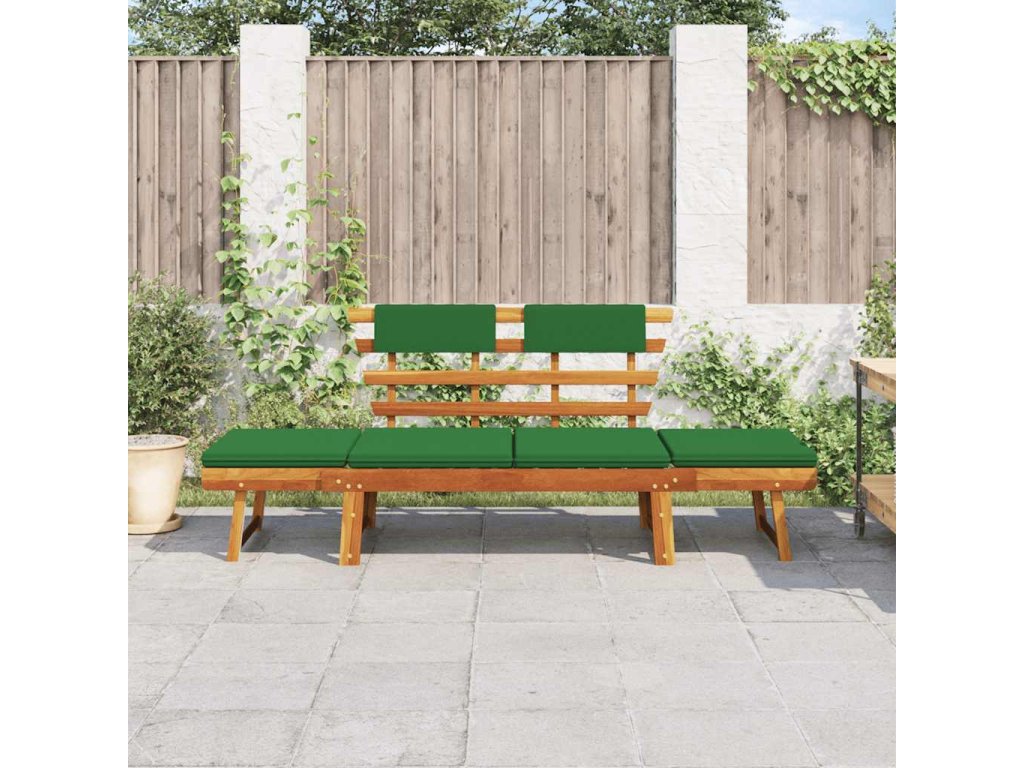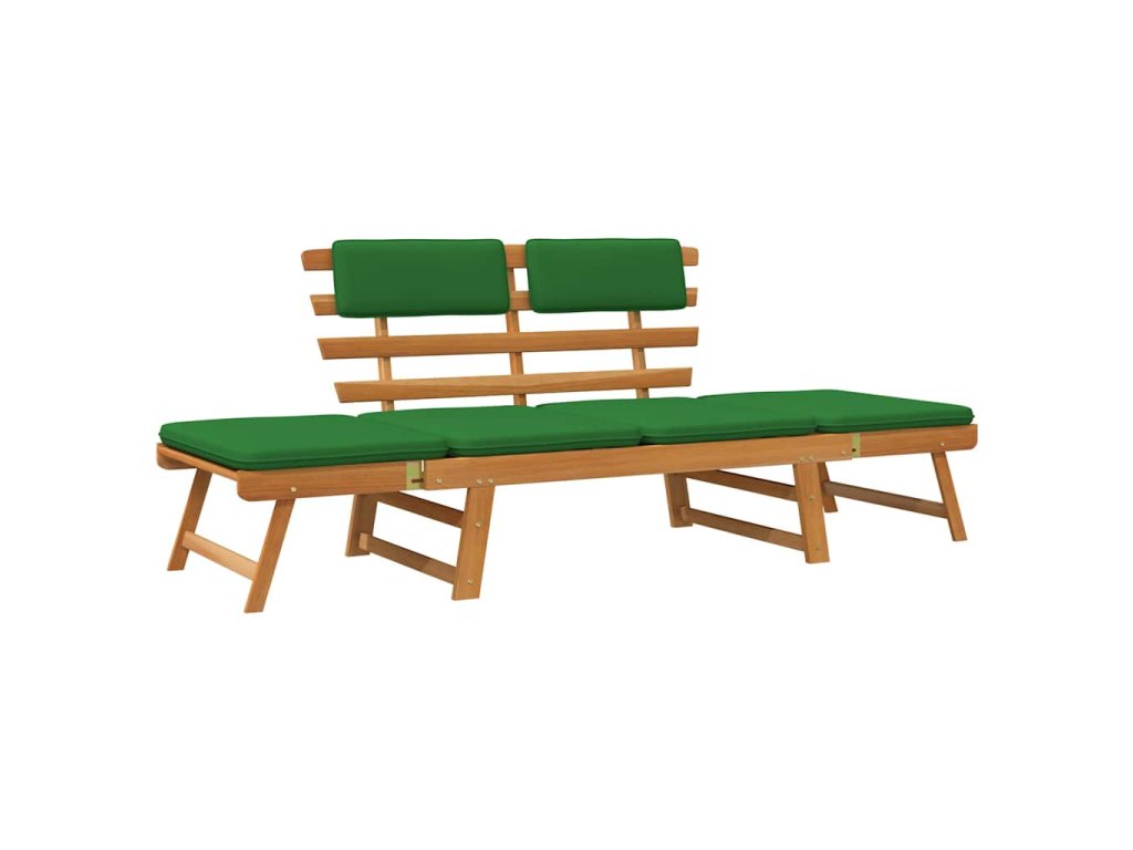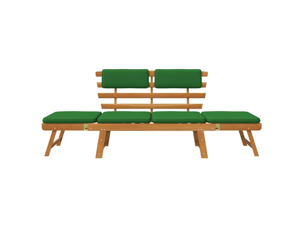 Záhradné ležadlo sa dá rýchlo a ľahko premeniť z lavice na pohovku a naopak pomocou nastaviteľných bočných dielov. Hrubé, odnímateľné podložky na operadlo a sedadlo poskytujú pohodlie pri sedení a ležaní. Poťahy podložiek sa dajú jednoducho zvliecť a oprať. Vonkajšia lavička je vyrobená z akáciového dreva, tvrdého dreva s bohatou štruktúrou. Je odolná voči poveternostným vplyvom a je vhodná na vonkajšie použitie.