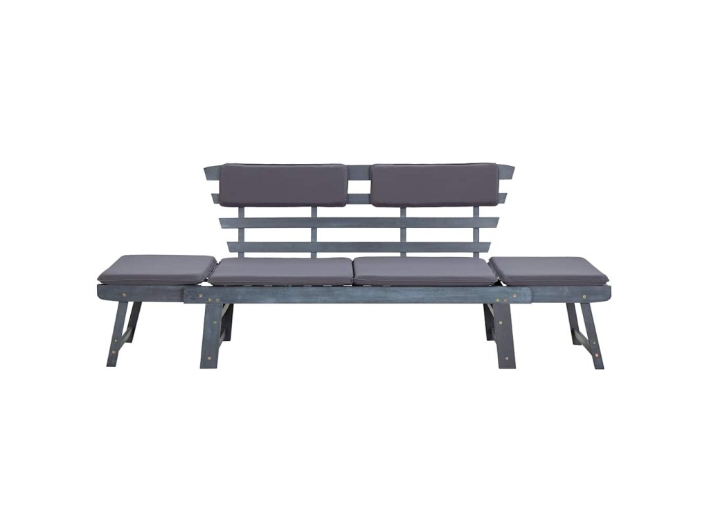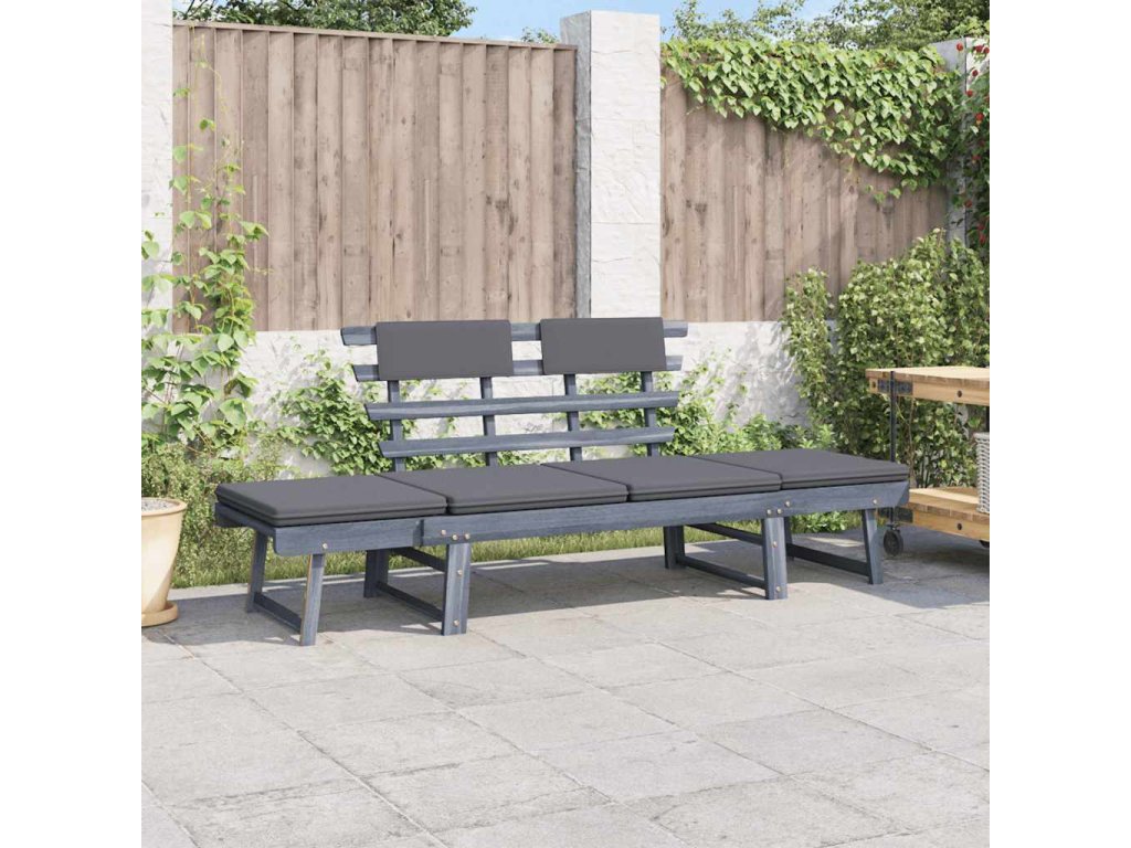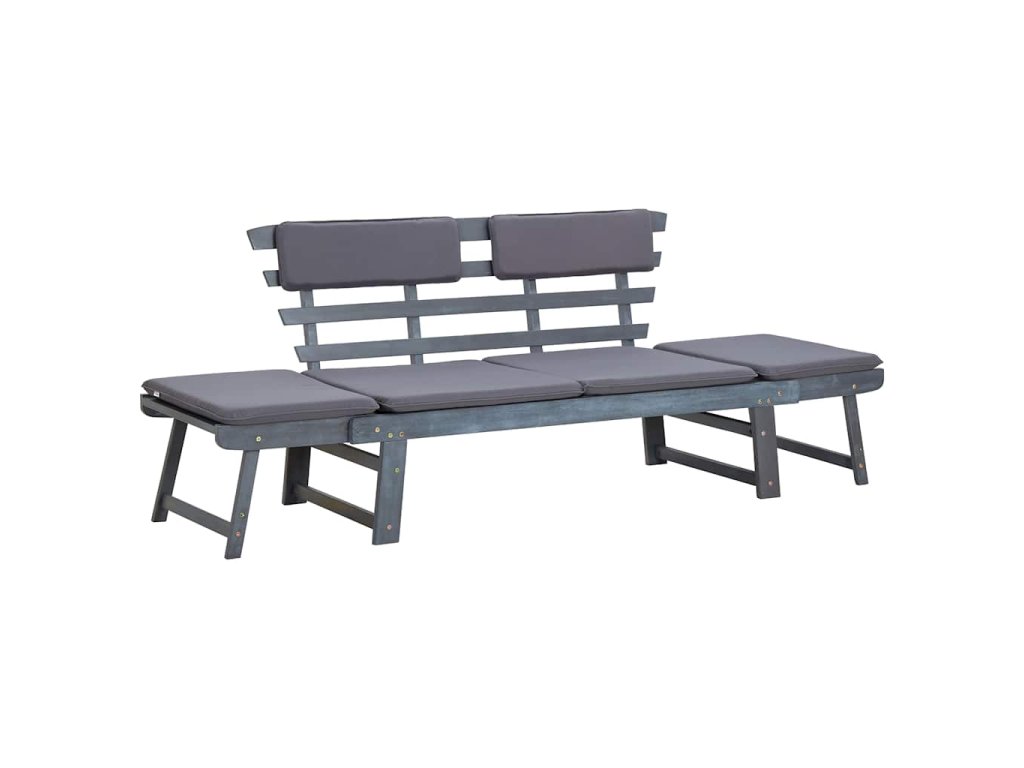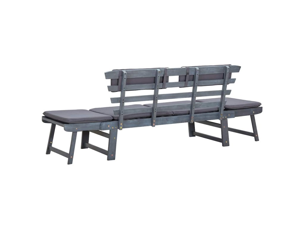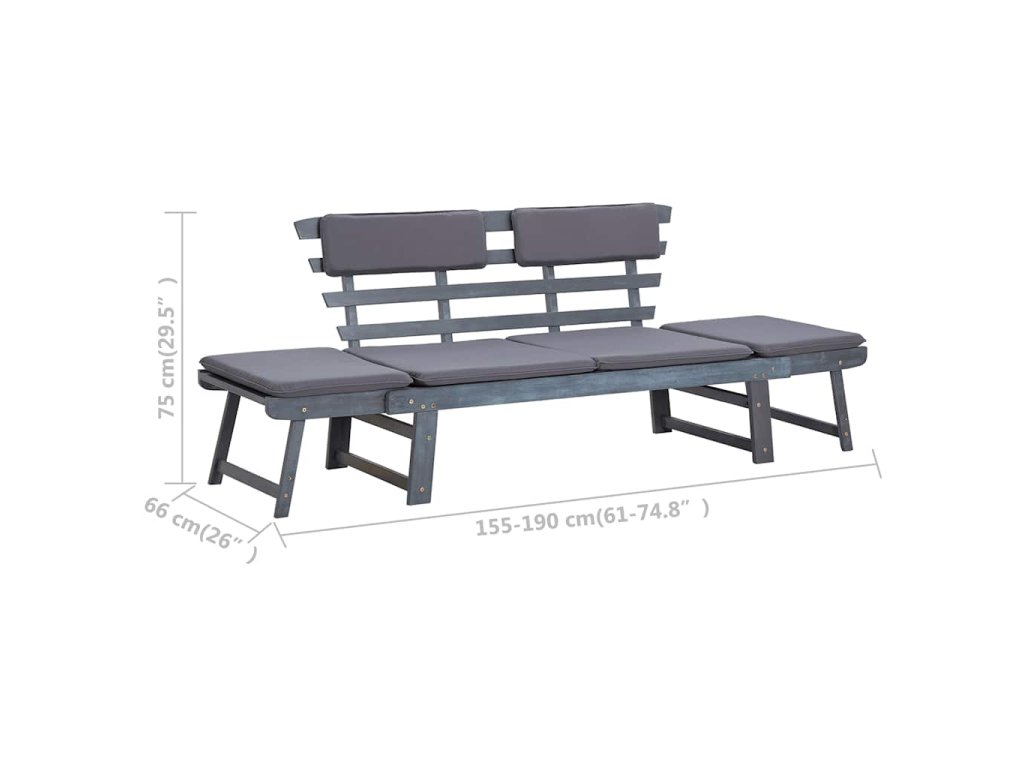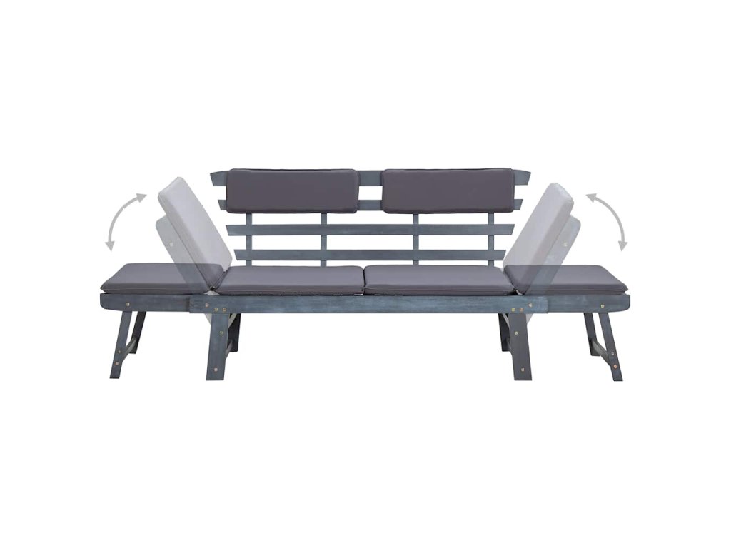 Záhradné ležadlo sa dá rýchlo a ľahko premeniť z lavice na pohovku a naopak pomocou nastaviteľných bočných dielov. Hrubé, odnímateľné podložky na operadlo a sedadlo poskytujú pohodlie pri sedení a ležaní. Poťahy podložiek sa dajú jednoducho zvliecť a oprať. Vonkajšia lavička je vyrobená z akáciového dreva, tvrdého dreva s bohatou štruktúrou. Je odolná voči poveternostným vplyvom a je vhodná na vonkajšie použitie.