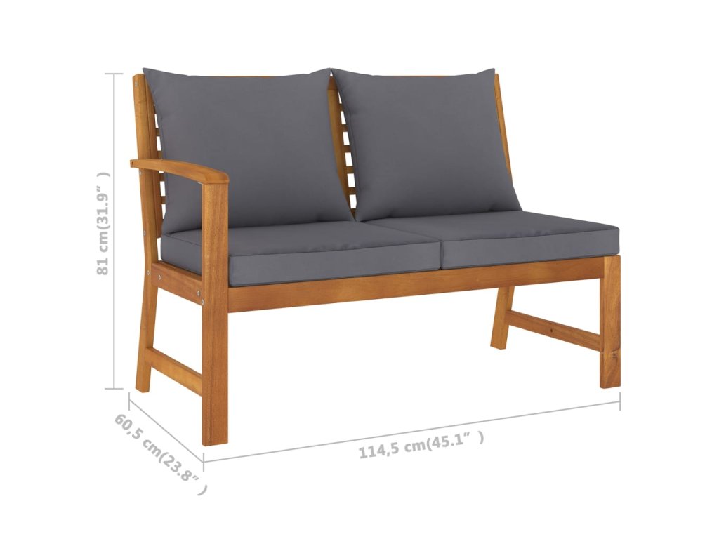 Lavička je vyrobená z vysokokvalitného masívneho akáciového dreva, tropického tvrdého dreva, ktoré je odolné voči poveternostným vplyvom a veľmi odolné. Vďaka olejovej povrchovej úprave má terasová sedačka teplú farbu, a ľahko sa čistí a udržiava. Balenie obsahuje vankúše na sedadlo a operadlá s hrubými polstrovaním pre dokonalé pohodlie. Tento kúsok je možné kombinovať s inými výrobkami v našom obchode, aby ste si mohli zostaviť svoju vlastnú sedaciu súpravu.