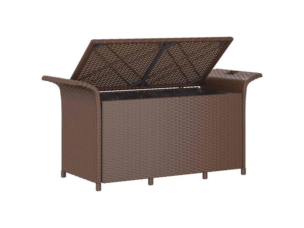 - Dostatok úložného priestoru: Záhradné sedadlo poskytuje vo vnútri dostatok úložného priestoru, aby ste mali svoje veci dobre usporiadané a na dosah. Vodeodolná PVC vložka udrží obsah v suchu. Háčik pomáha držať veko pri otváraní.