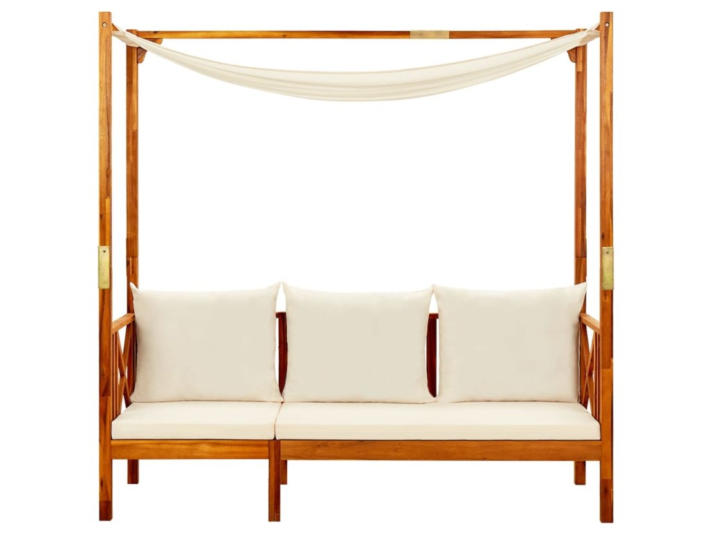 Vonkajšie ležadlo je vyrobené z masívneho akáciového dreva, takže je odolné a ľahko sa čistí vlhkou handričkou. Vďaka vankúšom s hrubým polstrovaním vám ležadlo prináša pohodlné posedenie. Okrem toho slúži aj ako slnečný prístrešok.