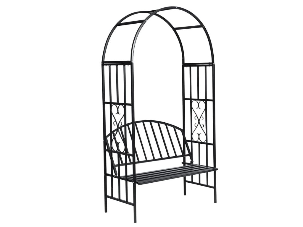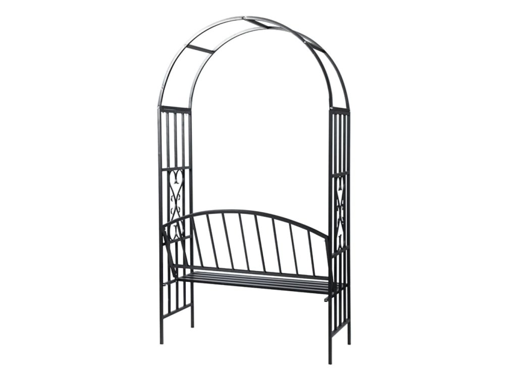 Táto záhradná pergola na ruže s lavičkou predstavuje pútavý doplnok do každej záhrady, na terasu či verandu. Celá pergola je ozdobená krásnymi detailmi.
