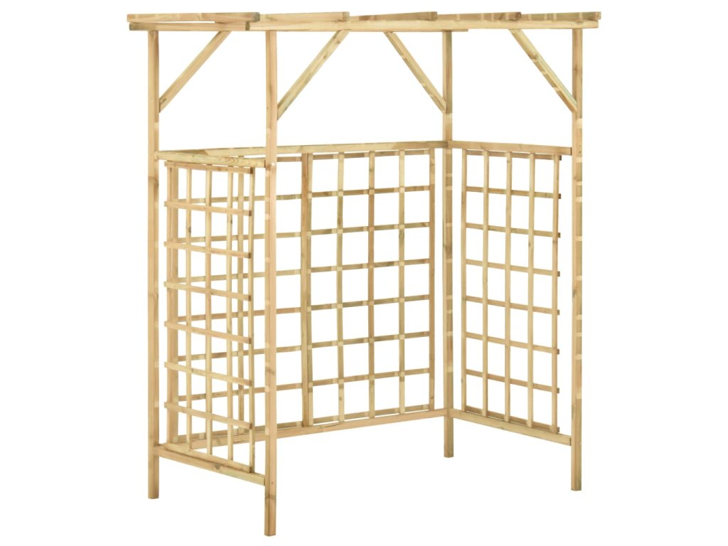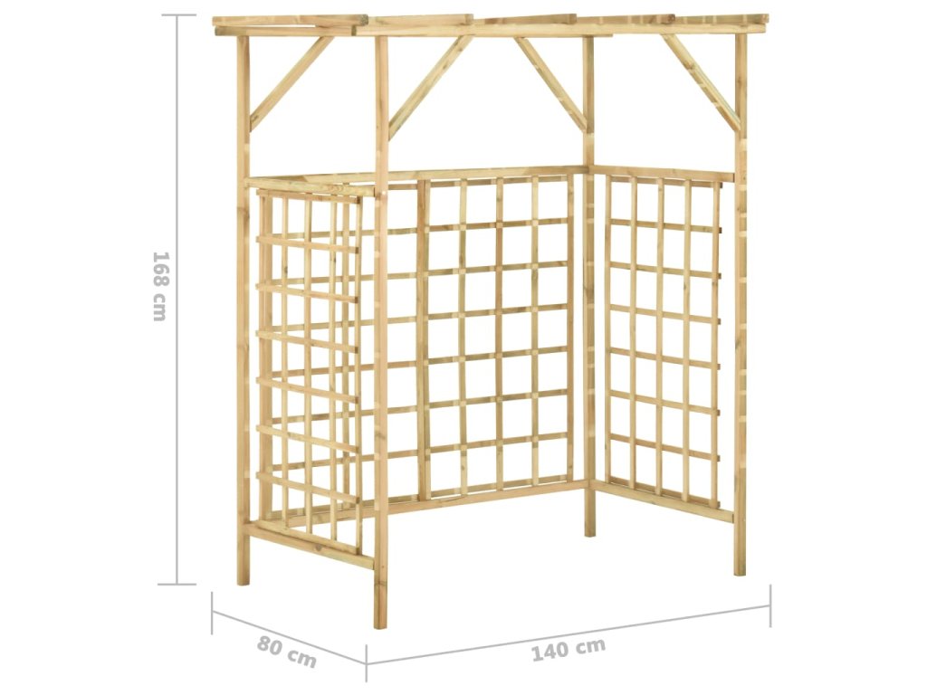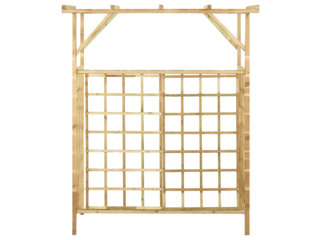 Tento drevený kvetináč je vyrobený zo zeleného impregnovaného borovicového dreva, vďaka čomu je veľmi pevný, trvácny a odolný voči hnilobe. Vstavaná mriežka tvorí skvelú oporu pre ruže alebo iné popínavé rastliny. Táto záhradná pergola je vhodná na umiestnenie 2 košov, ktorým poskytne nádherné pozadie.