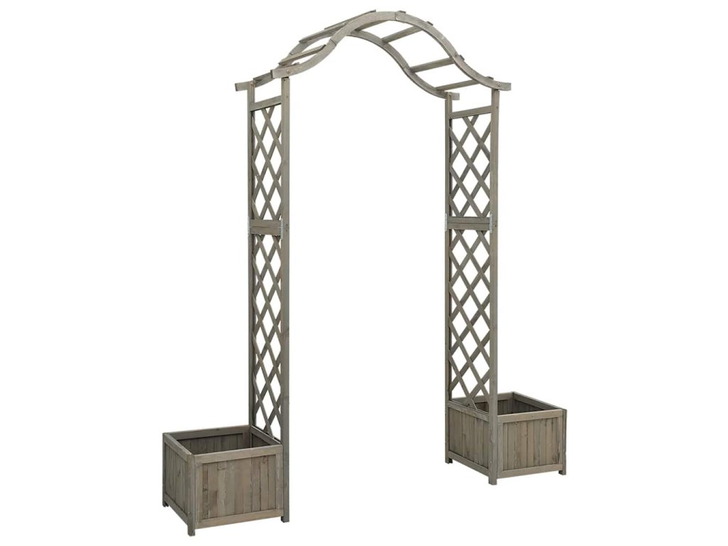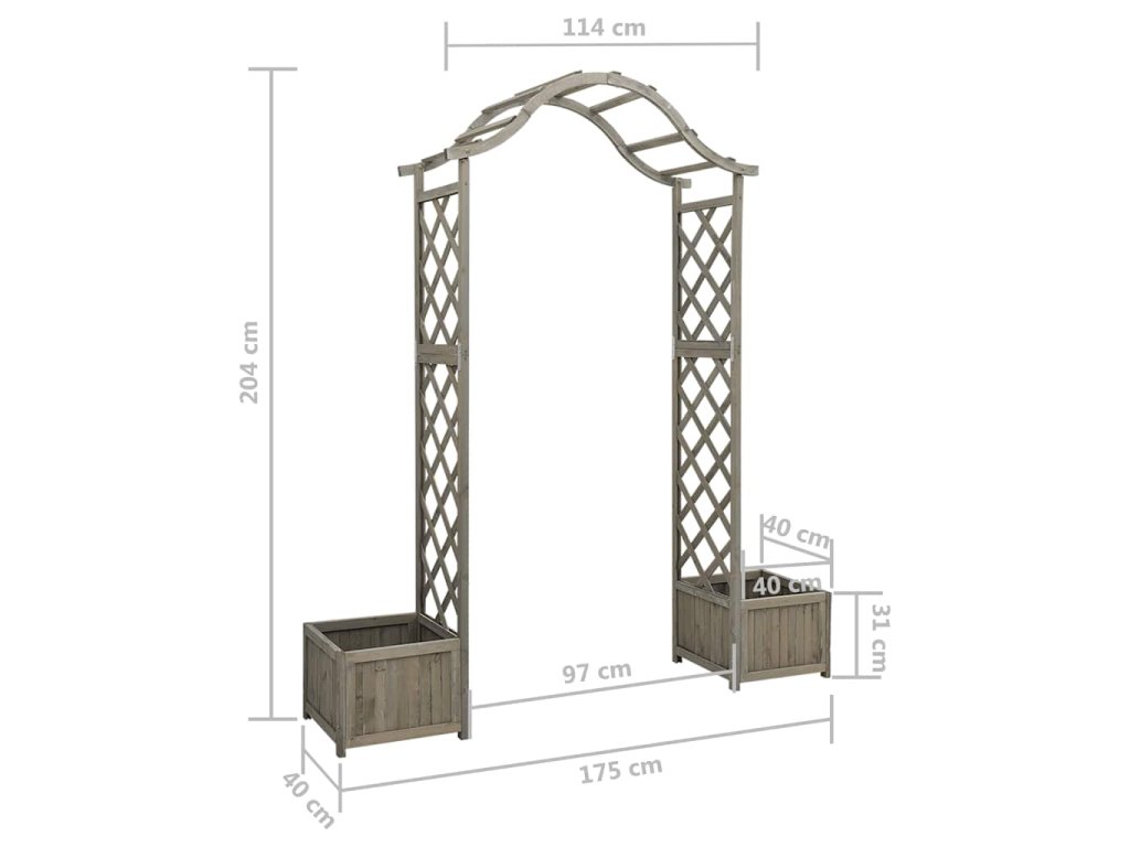 Tento záhradný oblúk je vyrobený z masívneho jedľového dreva a je odolný voči poveternostným vplyvom. Nádherný oblúk sa skvele hodí ako vchod, priechod alebo ako ozdoba záhradnej cesty. Dva bočné kvetináče ponúkajú ďalšie miesto na pestovanie krásnych kvetov. Keď sa po ňom budú šplhať popínavé rastliny, nebudete môcť od tejto krásnej pergoly odtrhnúť oči.