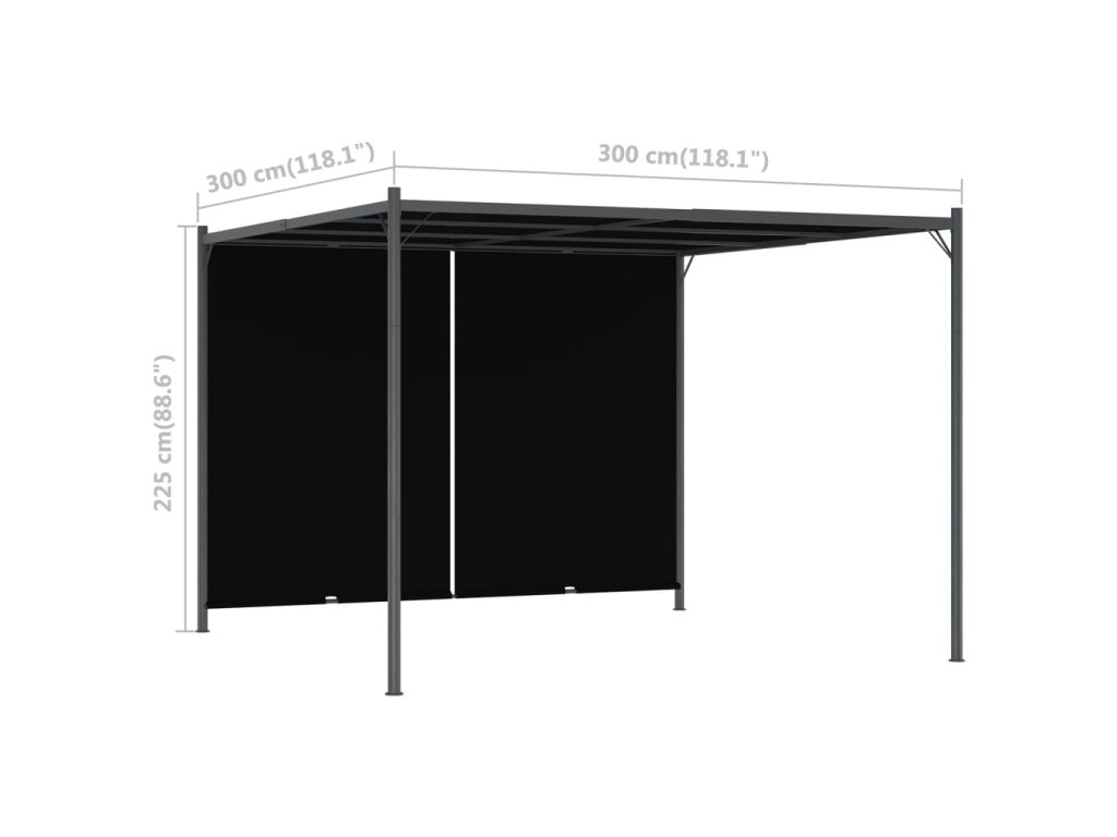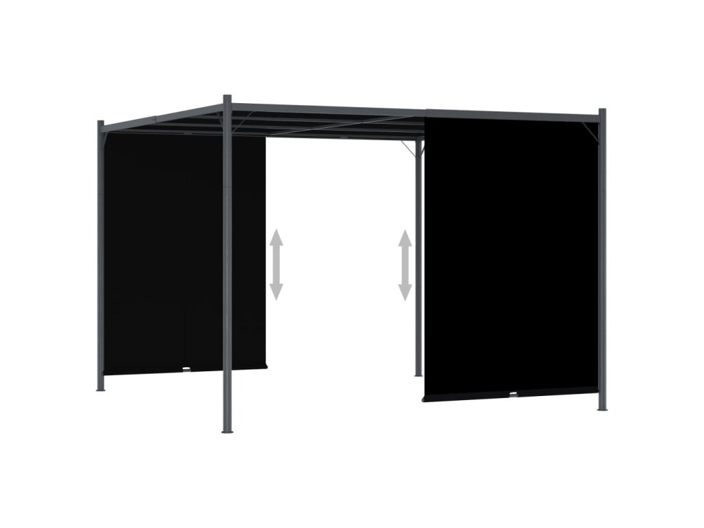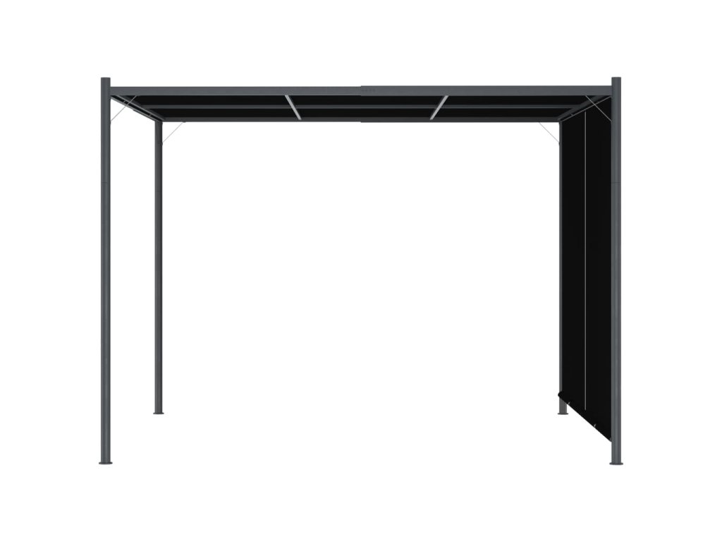 Táto inovatívna pergola je vybavená nastaviteľnou, výsuvnou strechou, ktorá sa dá pomocou vstavaných rúčok na oboch stranách spustiť alebo zdvihnúť. Preto je len na vás, koľko slnečného svetla alebo tieňa si zvolíte. Pergola je vyrobená z práškovej ocele a je veľmi pevná a odolná. Vodeodolná strecha je vyrobená z polyesterovej tkaniny s PA vrstvou a je odolná voči poveternostným vplyvom. Ak sa nepoužíva, môžete ju odstrániť na čistenie alebo uskladenie.