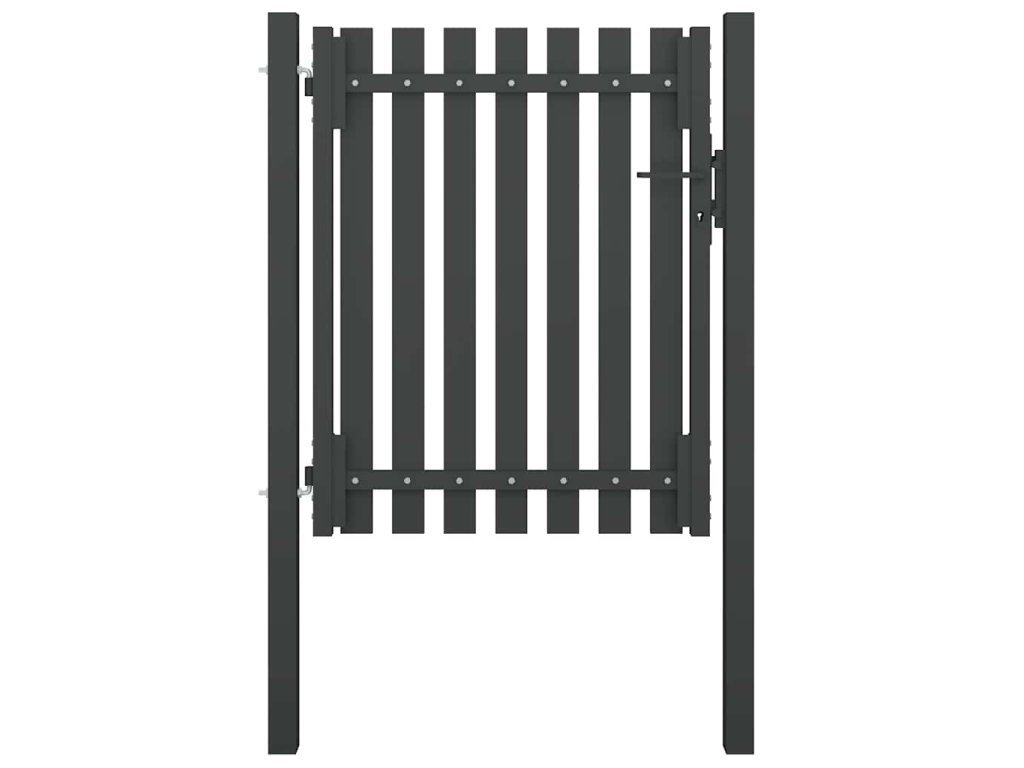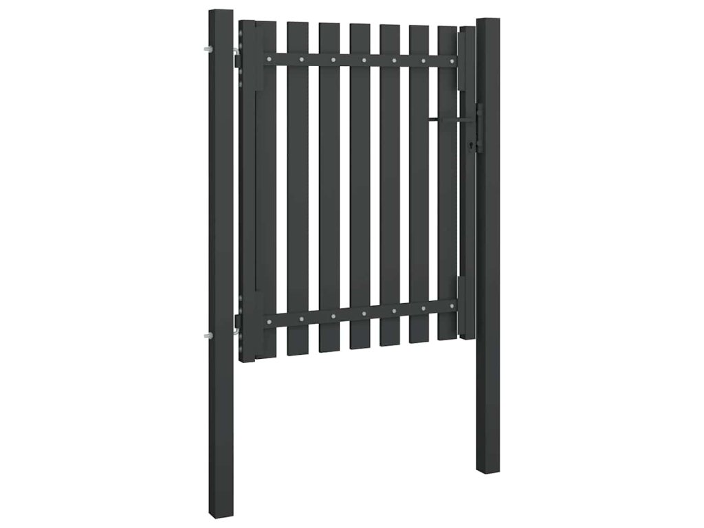 Záhradná brána so spevneným rámom z plochých trúbok poskytuje optimálnu bezpečnosť a súkromie, a zároveň vytvára pôsobivý vstup na pozemok. Brána je vyrobená z odolnej ocele, ktorá je ošetrená práškovou povrchovou úpravou, aby odolávala hrdzi a korózii. Plotová brána je vybavená uzamykacím systémom a dodáva sa spolu s dvoma pevnými stĺpikmi a pántmi pre jednoduchú inštaláciu.