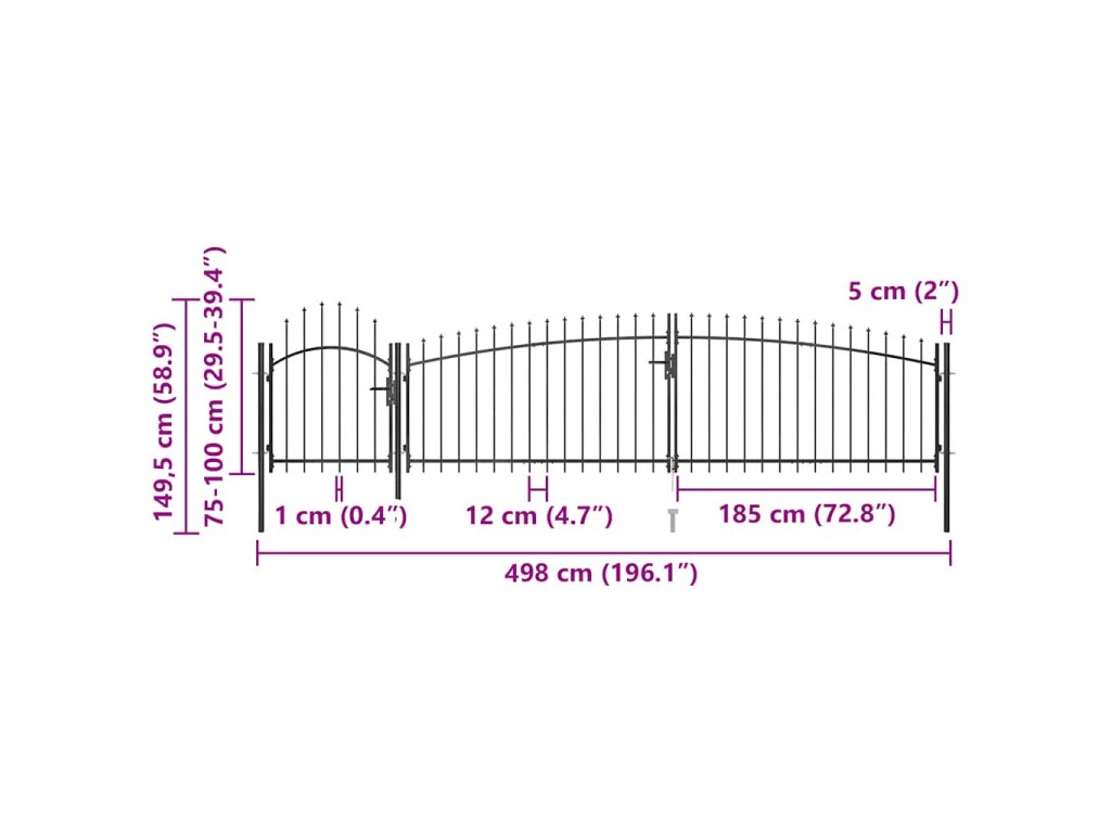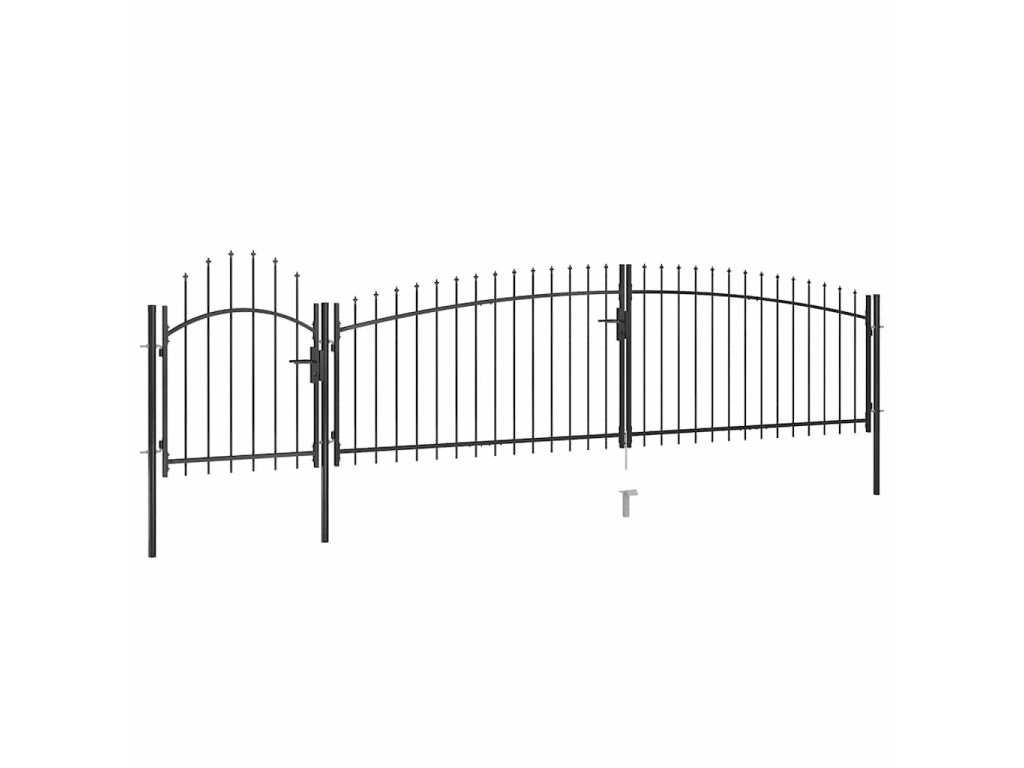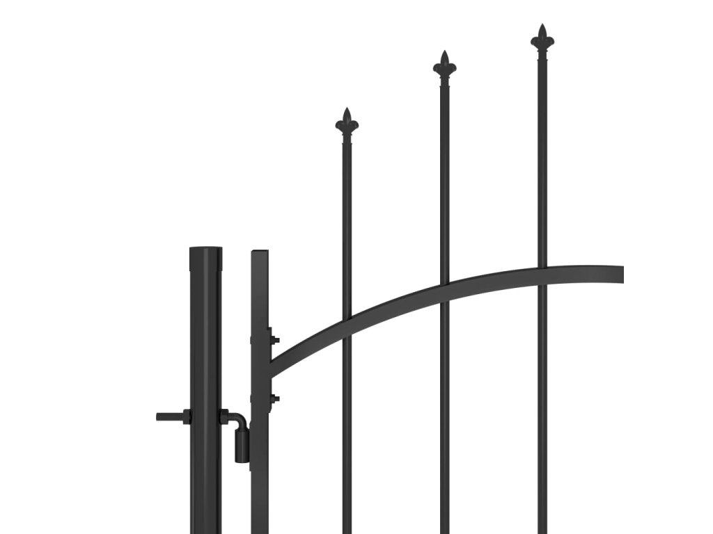 Vrchná časť záhradnej brány má elegantný zaoblený dizajn a vďaka pevným vodorovným oporným tyčiam na spevnenie rámu brána poskytuje optimálnu bezpečnosť a súkromie, a zároveň vytvára pôsobivý vstup na pozemok. Brána je vyrobená z ocele s práškovou povrchovou úpravou, ktorá je odolná voči hrdzi a korózii. Plotová brána je okrem toho vybavená aj uzamykacím systémom a dodáva sa spolu s troma pevnými stĺpikmi s robustnými pántmi pre jednoduchú inštaláciu.