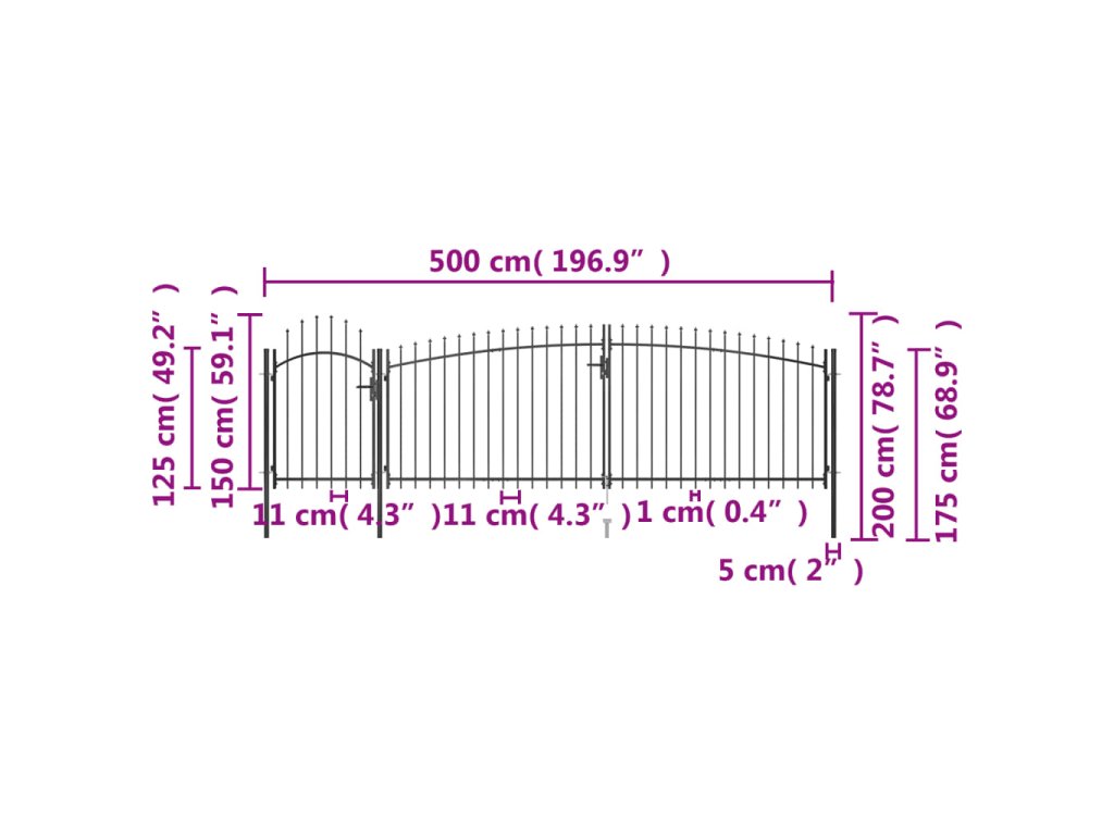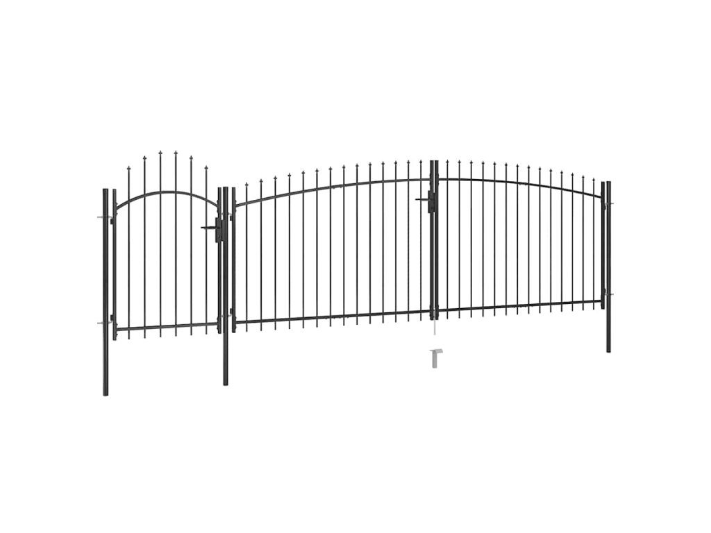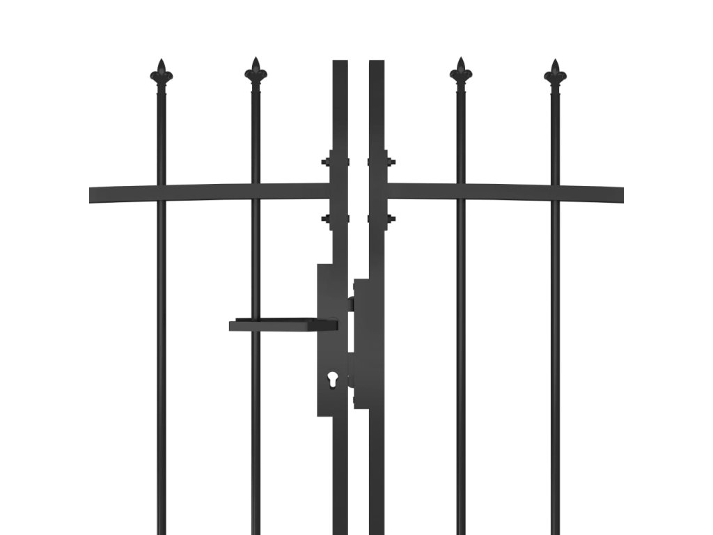 Vrchná časť záhradnej brány má elegantný zaoblený dizajn a vďaka pevným vodorovným oporným tyčiam na spevnenie rámu brána poskytuje optimálnu bezpečnosť a súkromie, a zároveň vytvára pôsobivý vstup na pozemok. Brána je vyrobená z ocele s práškovou povrchovou úpravou, ktorá je odolná voči hrdzi a korózii. Plotová brána je okrem toho vybavená aj uzamykacím systémom a dodáva sa spolu s troma pevnými stĺpikmi s robustnými pántmi pre jednoduchú inštaláciu.