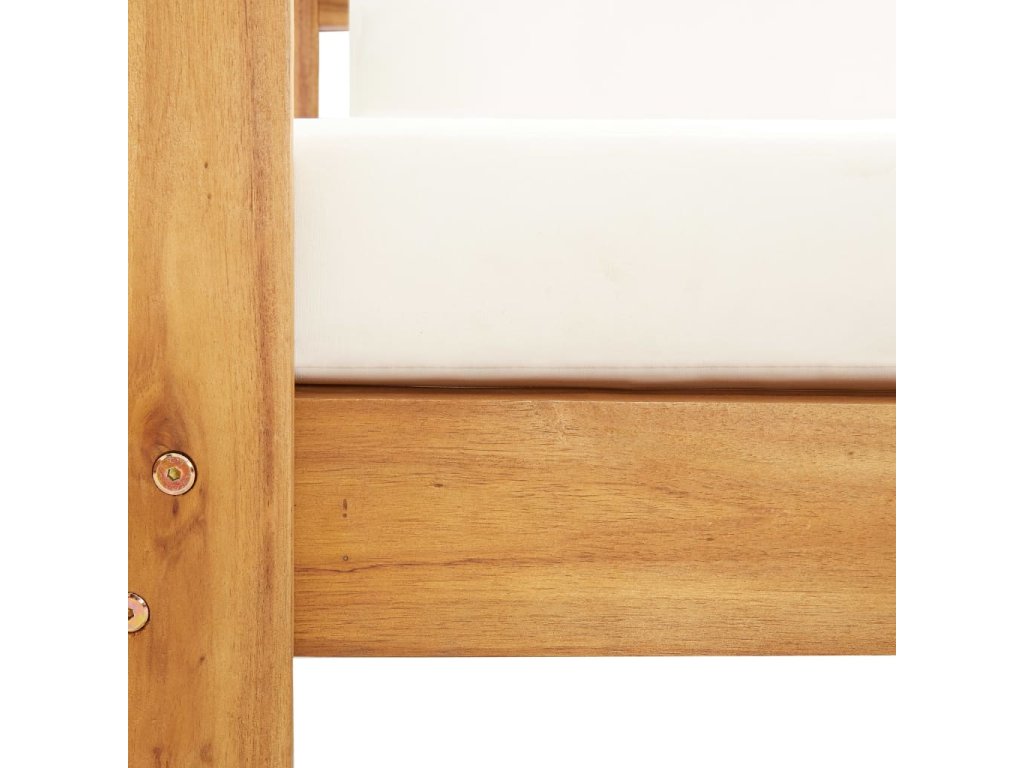 Pohovka je starostlivo vyrobená z akáciového masívu s tíkovým vzhľadom, vďaka čomu je pevná, odolná a vhodná na vonkajšie použitie. Hrubo čalúnené podložky na sedadlo a operadlo poskytujú vo vašom čase oddychu extra pohodlie. Olejom upravený povrch sa ľahko čistí vlhkou handričkou.