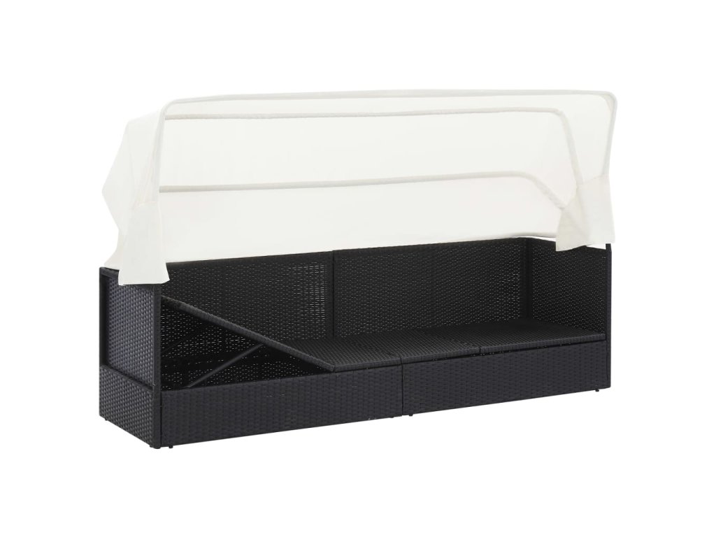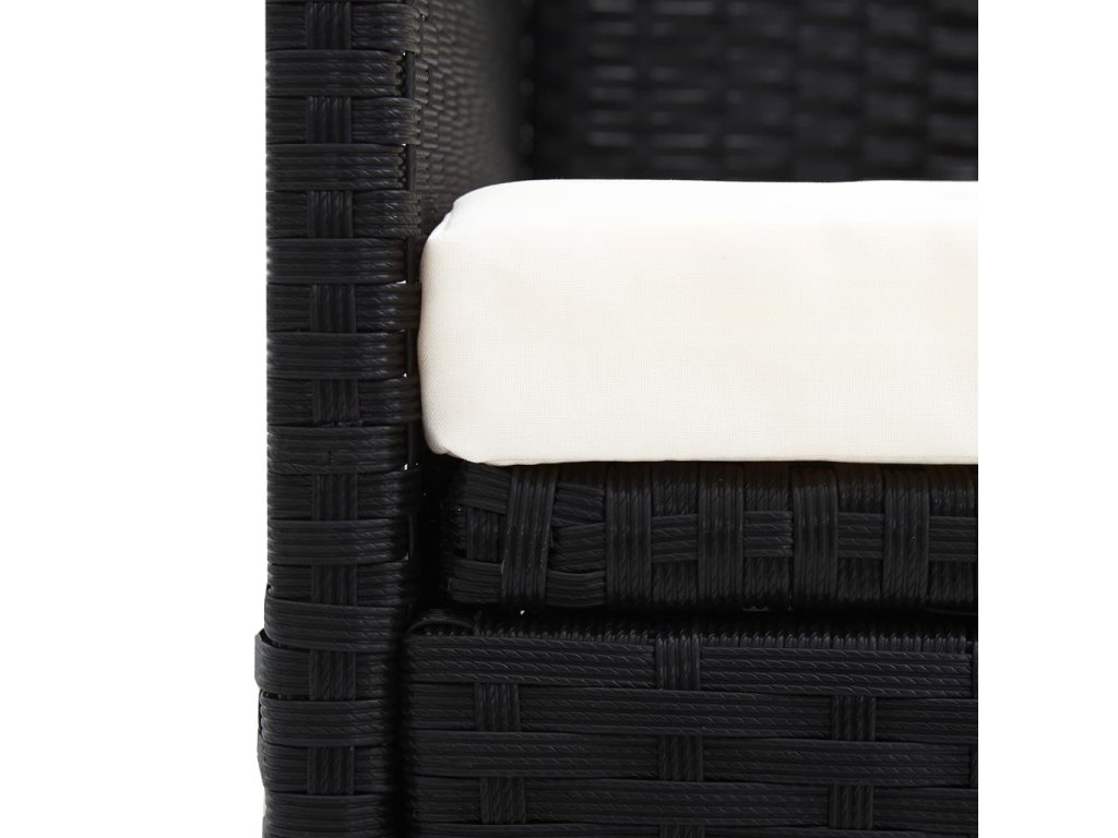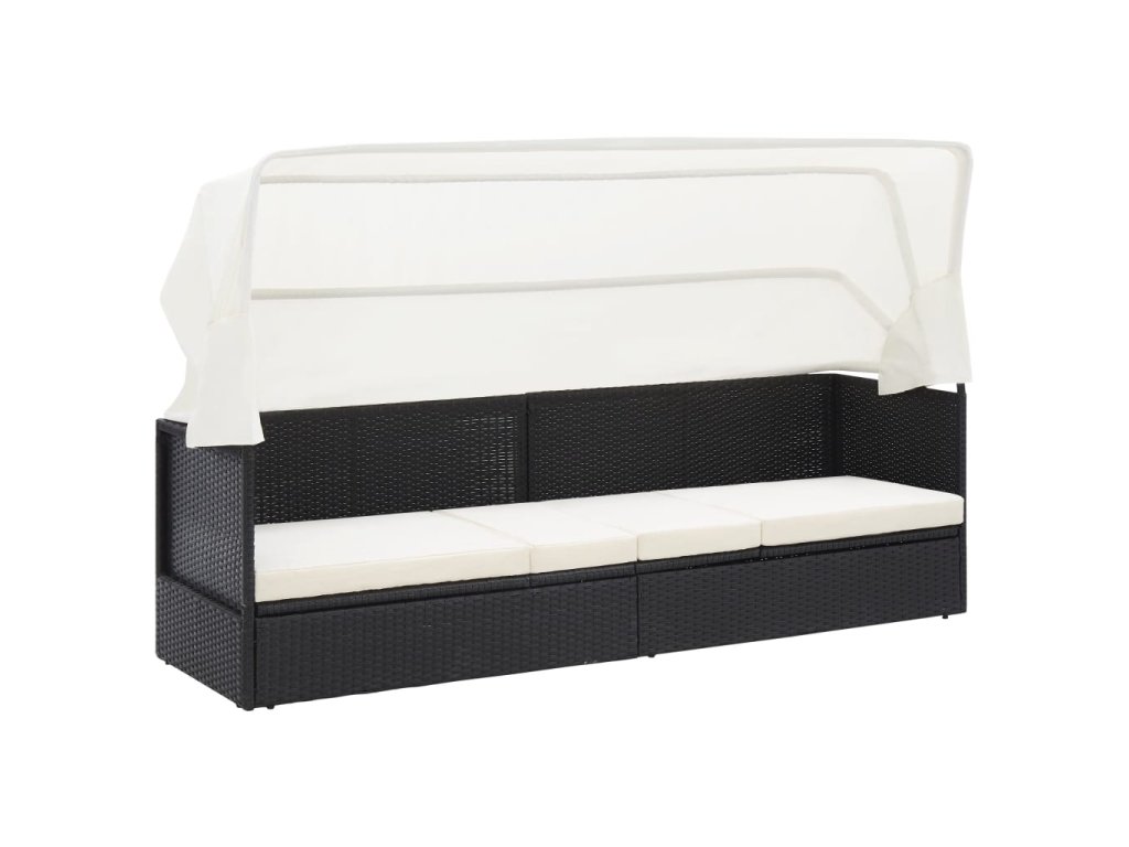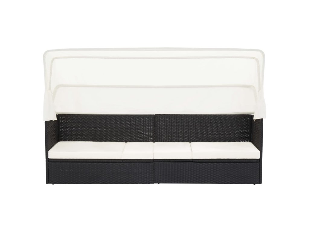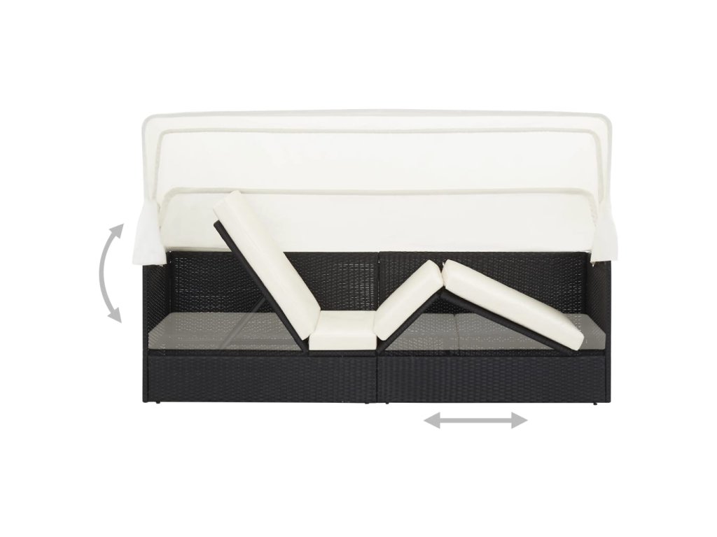 Pohovka má oceľový rám s práškovým povrchom, ktorý je pokrytý PE ratanom odolným voči poveternostným vplyvom, ktorý sa ľahko čistí. Vďaka hrubému a odnímateľnému vankúšu na sedadle je pohovka veľmi pohodlná. Vďaka sklápacej streche si môžete vychutnať opaľovanie bez obáv z oslnenia.
