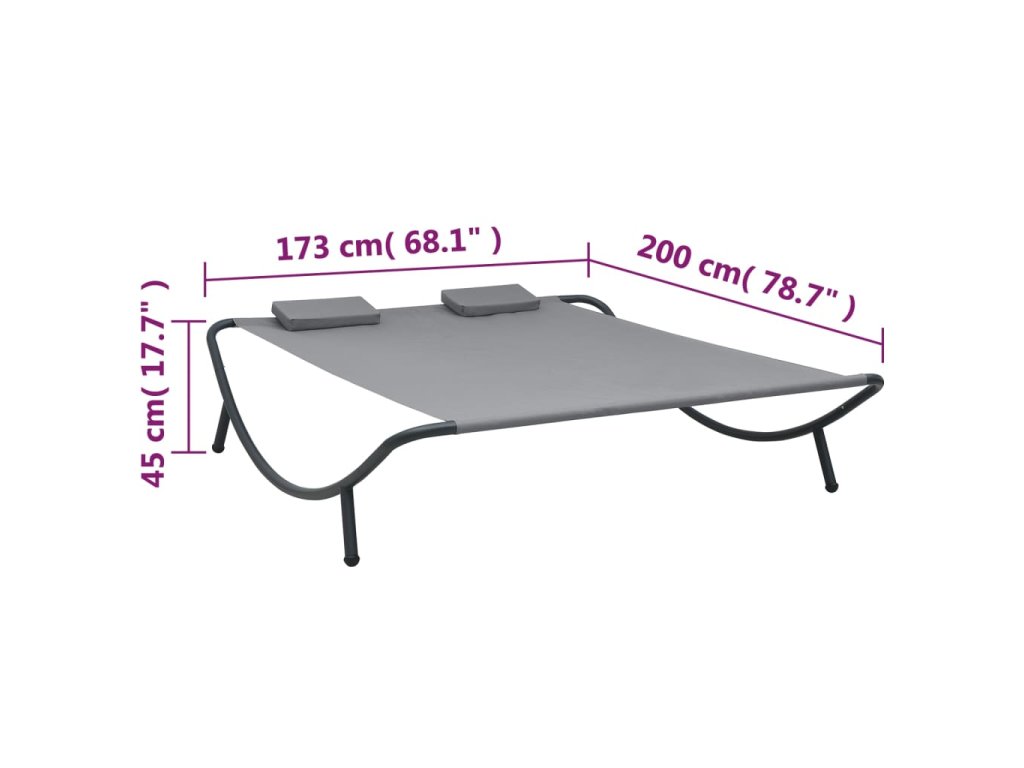 Záhradná posteľ je vyrobená z kvalitnej oxfordskej látky, ktorá je odolná voči poveternostným vplyvom, a preto je vhodná na celoročné používanie v exteriéri. Oceľový rám s práškovou povrchovou úpravou ležadlu dodáva vynikajúcu stabilitu a trvácnosť, a preto vám bude slúžiť dlhé roky. Okrem toho sa dodáva s dvoma veľmi pohodlnými vankúšmi s hustou výplňou, ktoré poskytujú optimálne pohodlie pri ležaní. Polyesterové poťahy vankúšov si nevyžadujú náročnnú údržbu a dajú sa zvliecť a oprať. Záhradná posteľ sa jednoducho montuje.